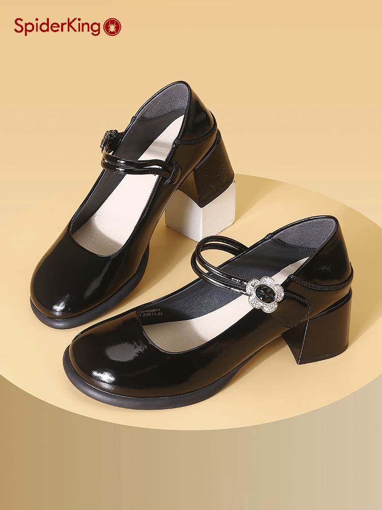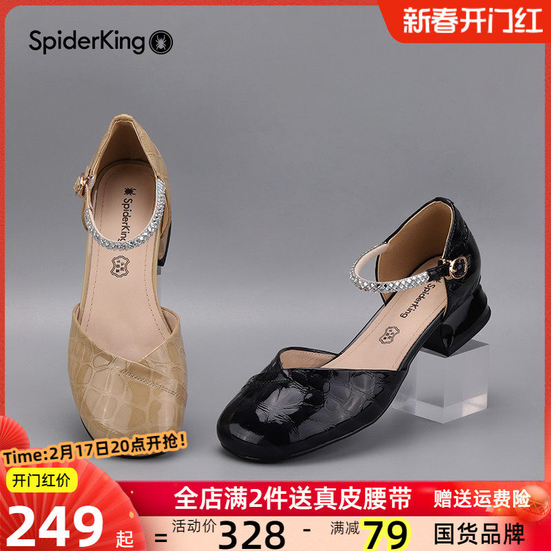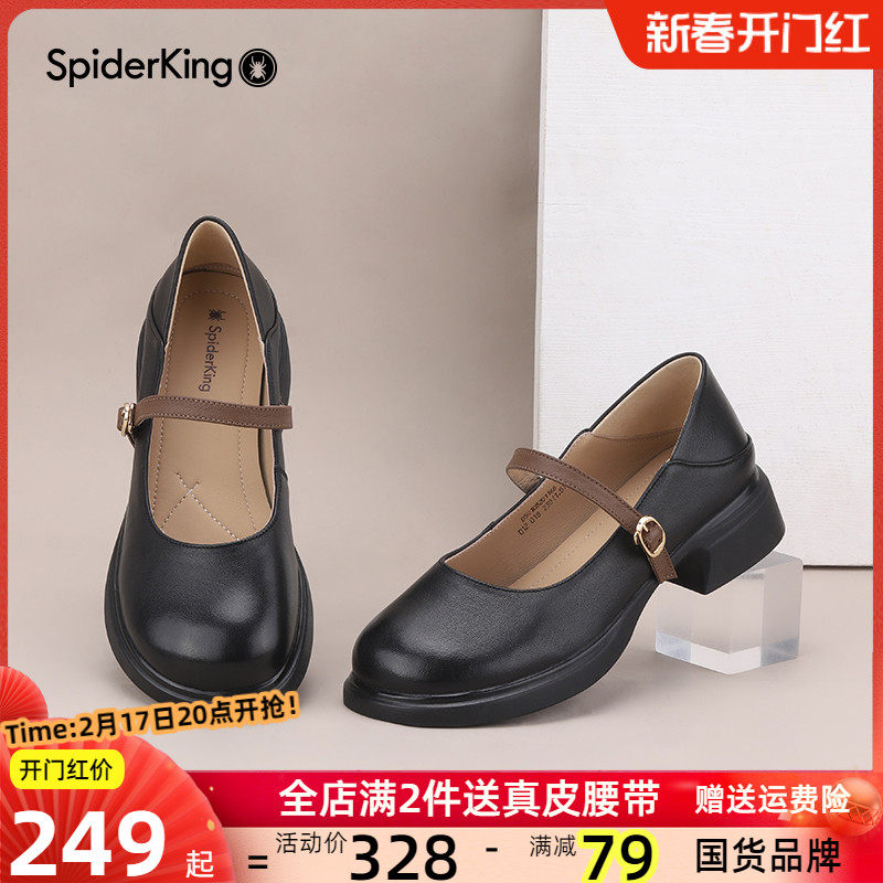 SPIDER KING/蜘蛛王玛丽珍鞋真皮2023春商场新款单鞋女一字晚晚鞋