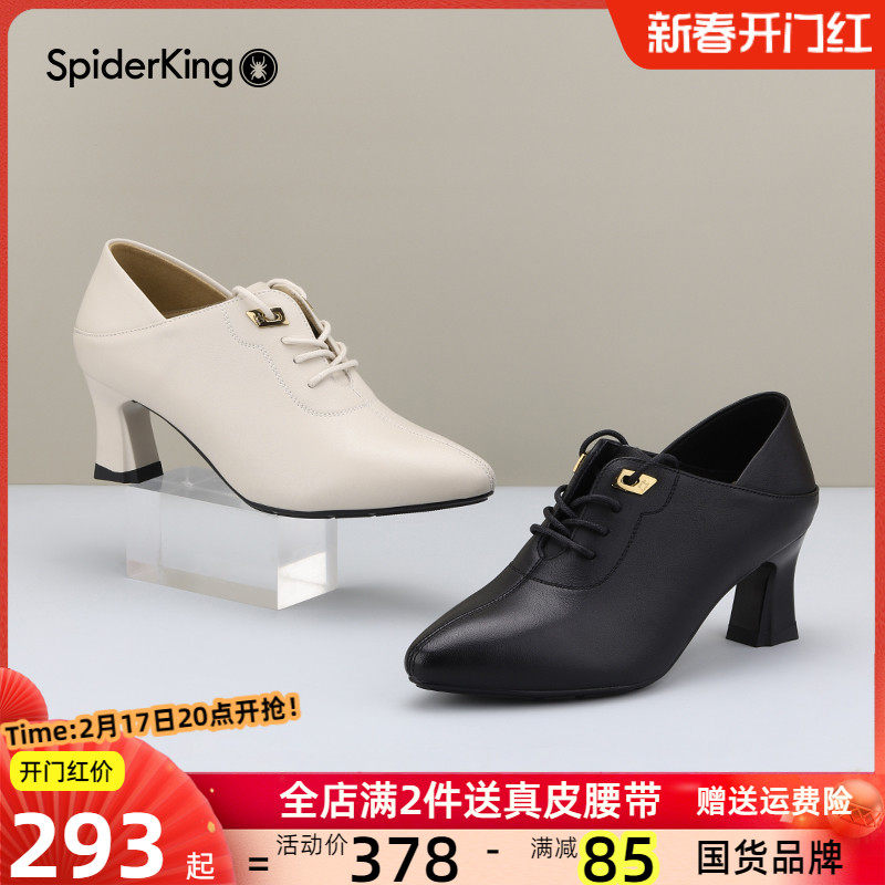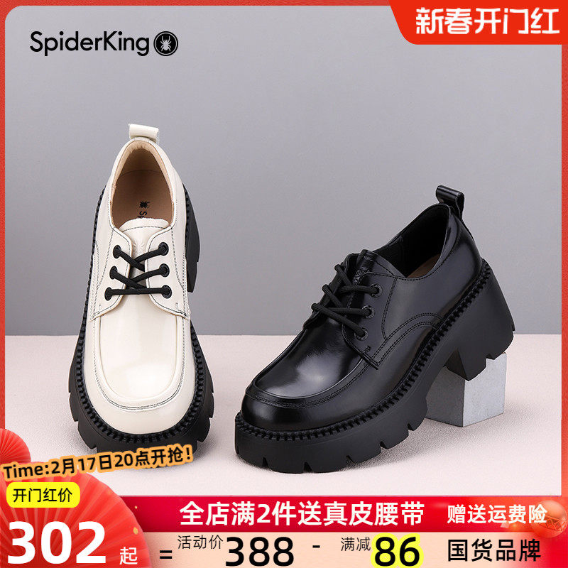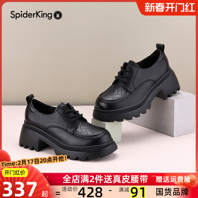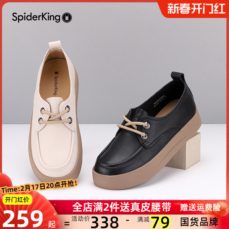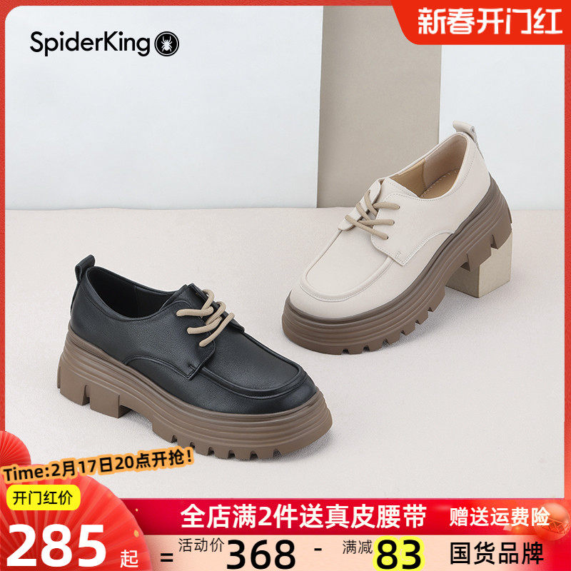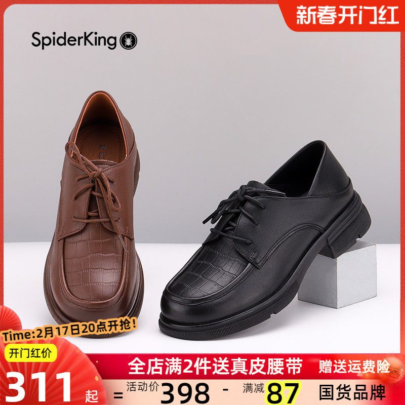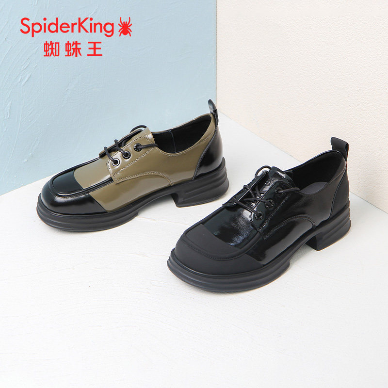 SPIDER KING/蜘蛛王女单鞋2023秋商场新款小皮鞋系带真皮拼色软底