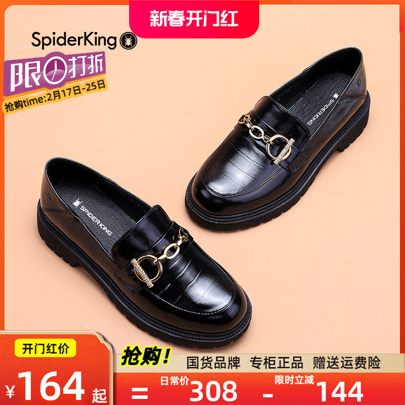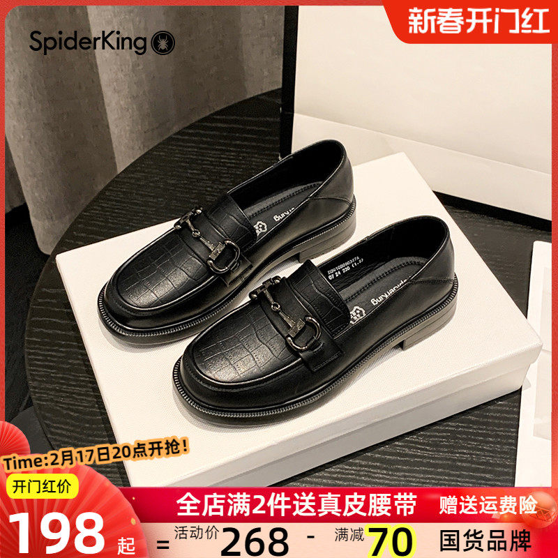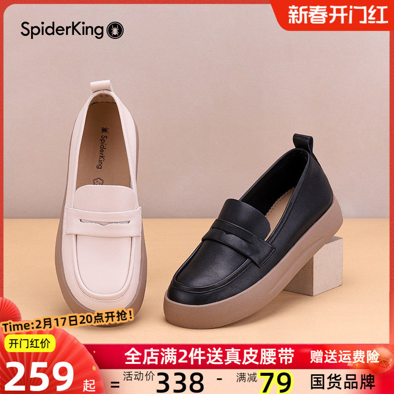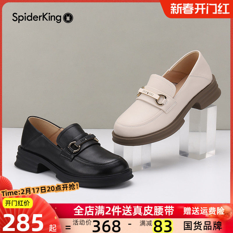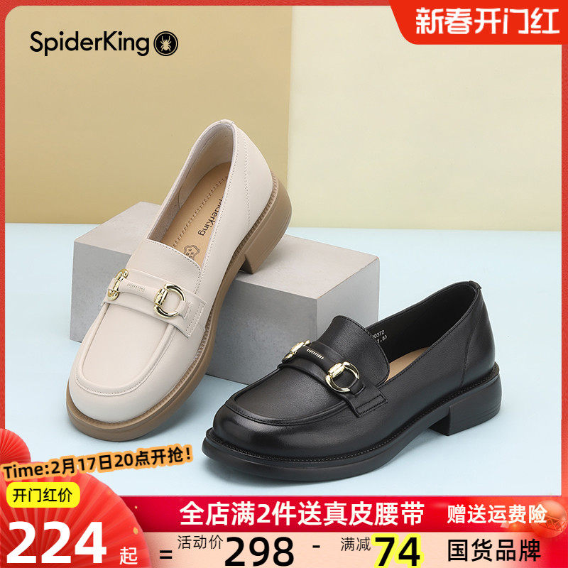 蜘蛛王女鞋2023年秋季新款乐福鞋女士真皮软底JK小皮鞋英伦单鞋女