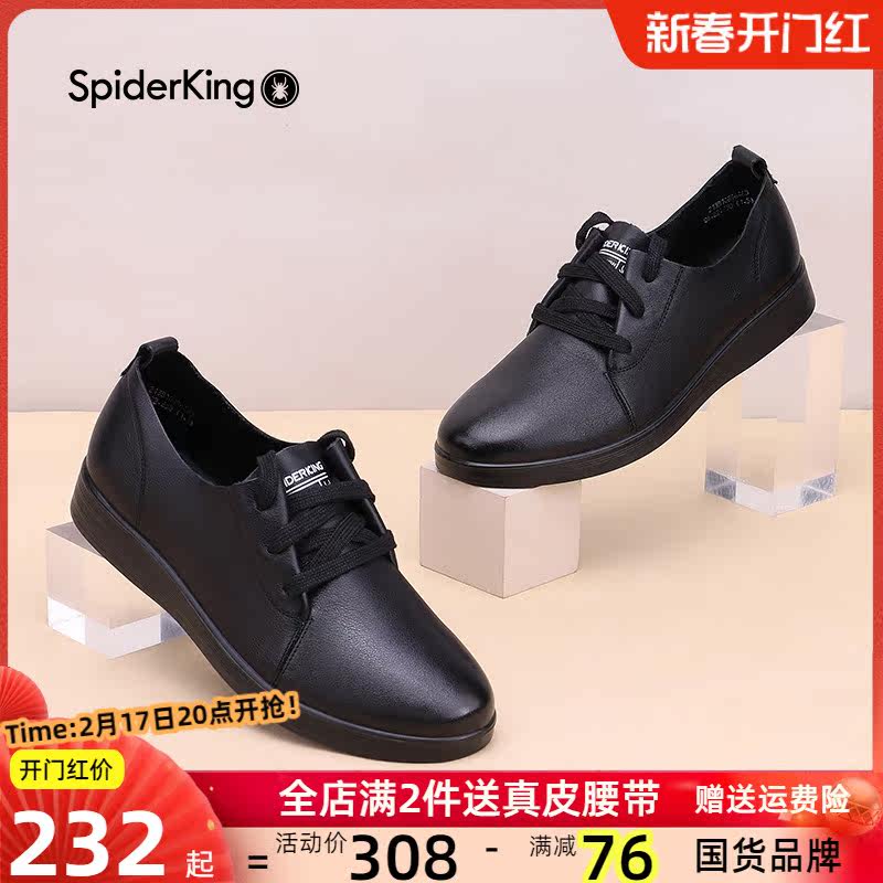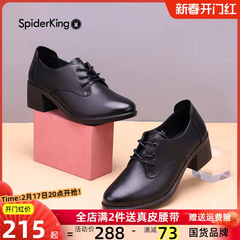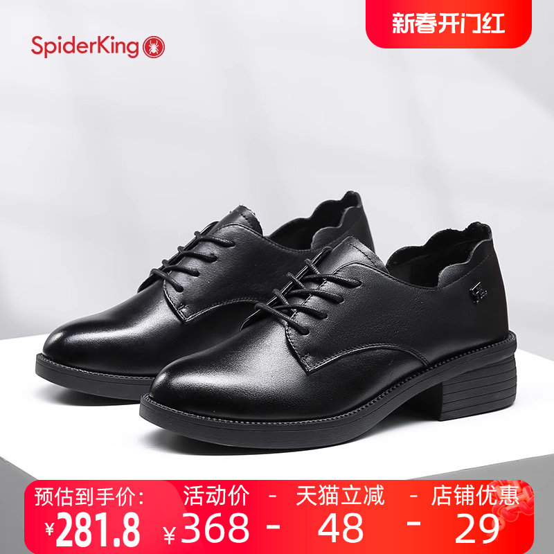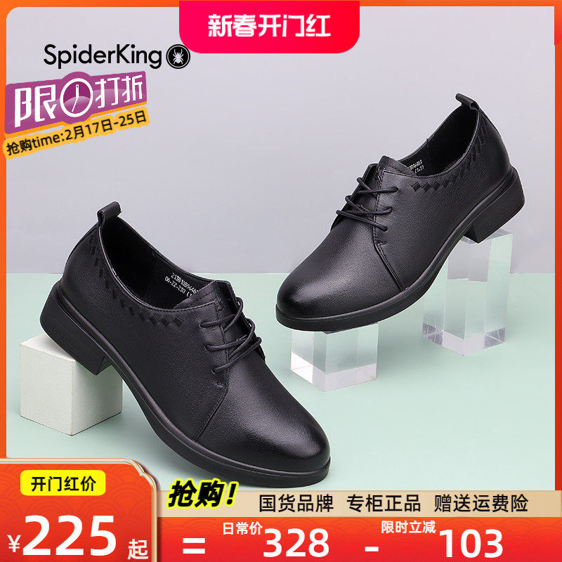 蜘蛛王乐福鞋女真皮春秋新款系带工作鞋女软底舒适厚底小皮鞋单鞋