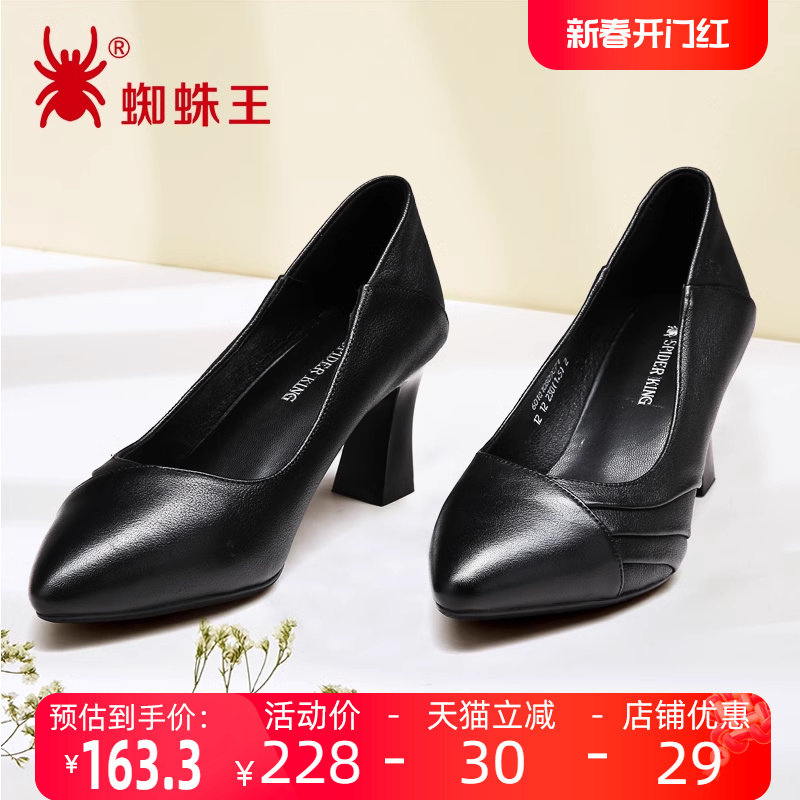 蜘蛛王女鞋新款职业高跟鞋女真皮百搭尖头细跟春秋单鞋女皮鞋