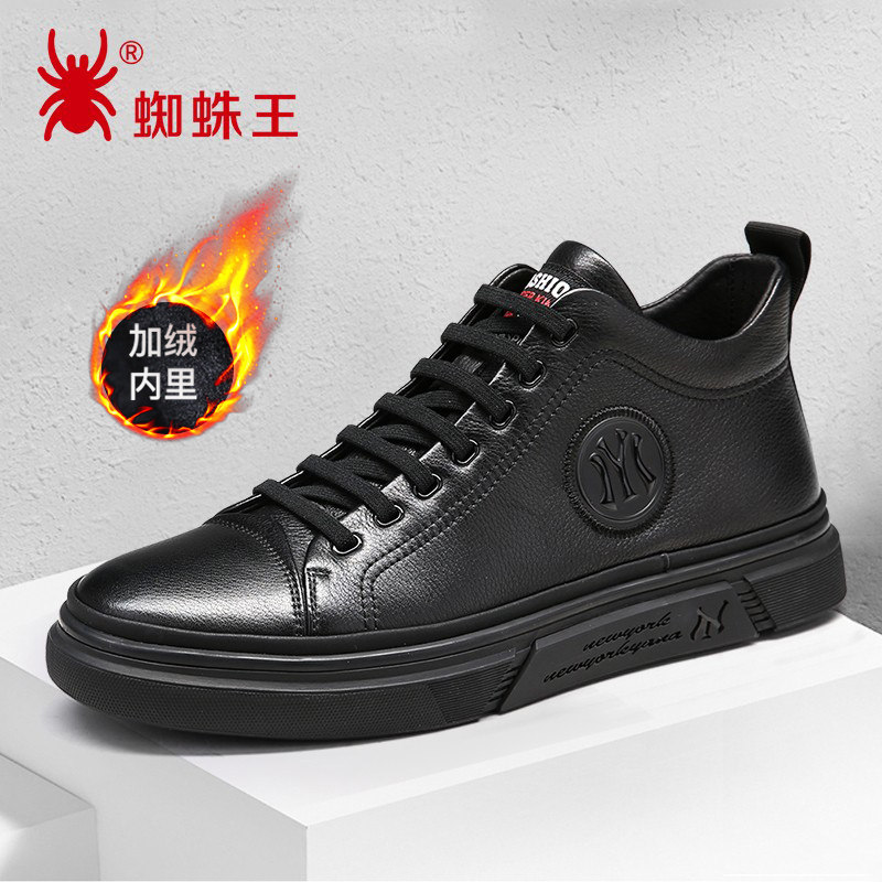 蜘蛛王真皮男鞋秋冬季新款单鞋棉鞋休闲防滑爸爸鞋休闲皮鞋男
