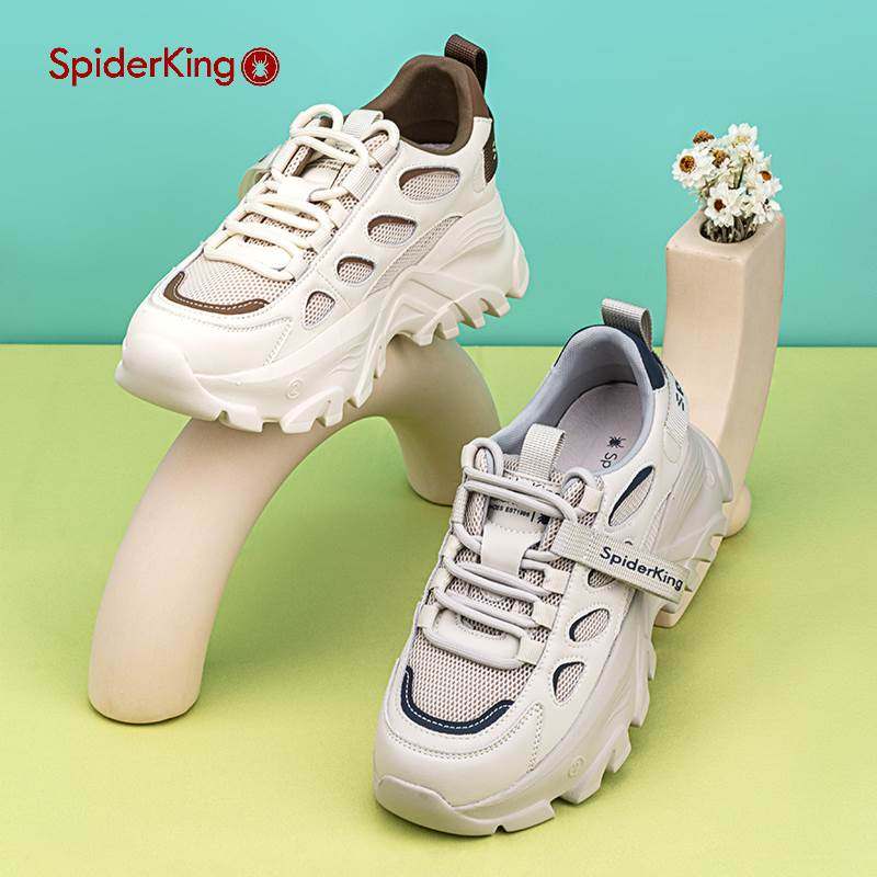 蜘蛛王老爹鞋女2023秋季真皮厚底增高网面休闲运动鞋透气轻便单鞋