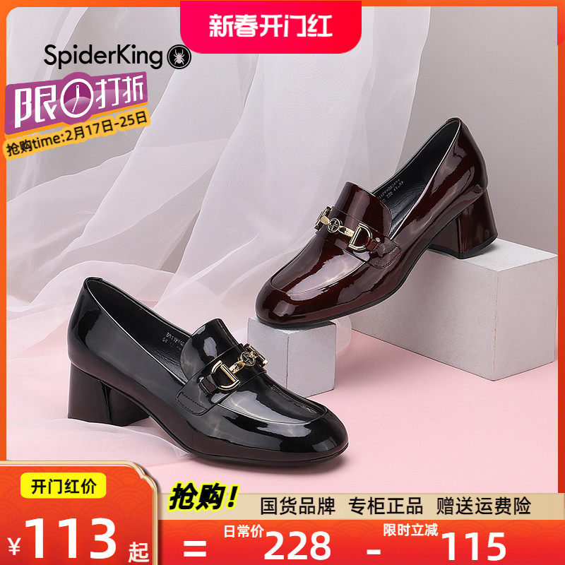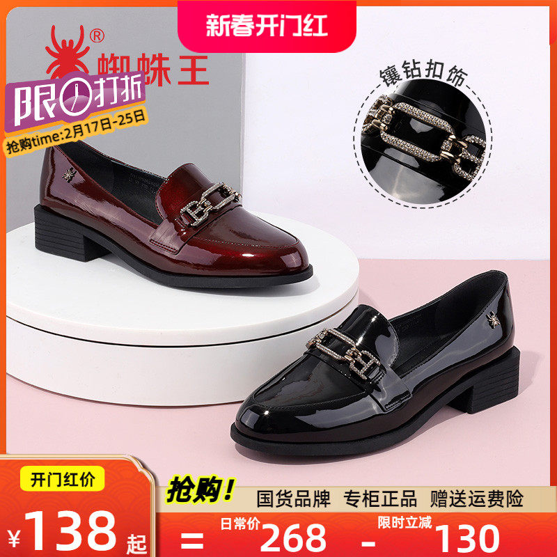 清仓蜘蛛王女鞋乐福鞋春秋季新品单鞋粗跟一脚蹬英伦风中跟小皮鞋