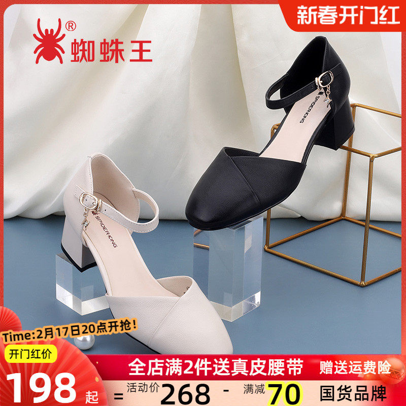 蜘蛛王包头凉鞋女鞋2024春夏新款牛皮后空单鞋高跟鞋舒适一字带鞋