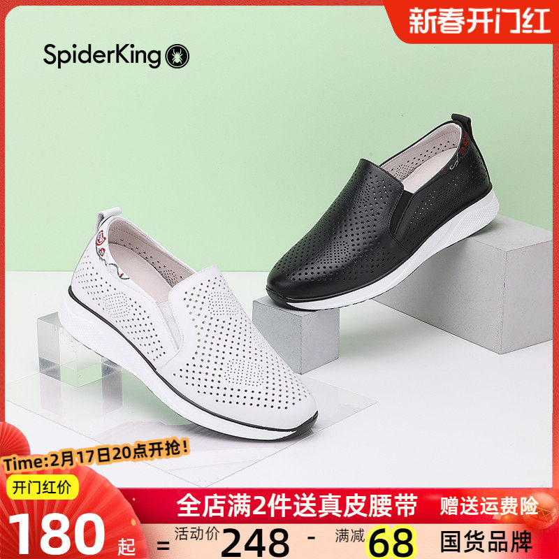 蜘蛛王镂空妈妈鞋女鞋中老年休闲真皮软底舒适平底单鞋防滑小皮鞋