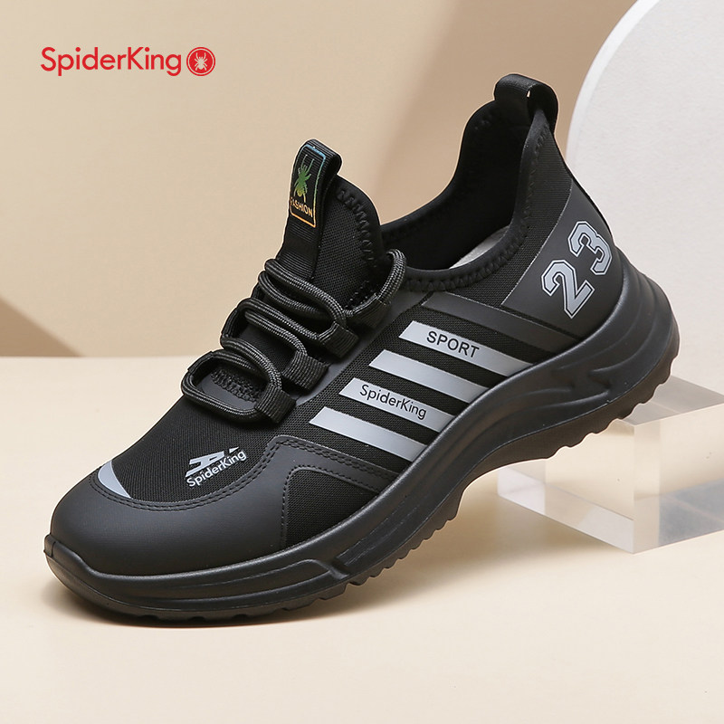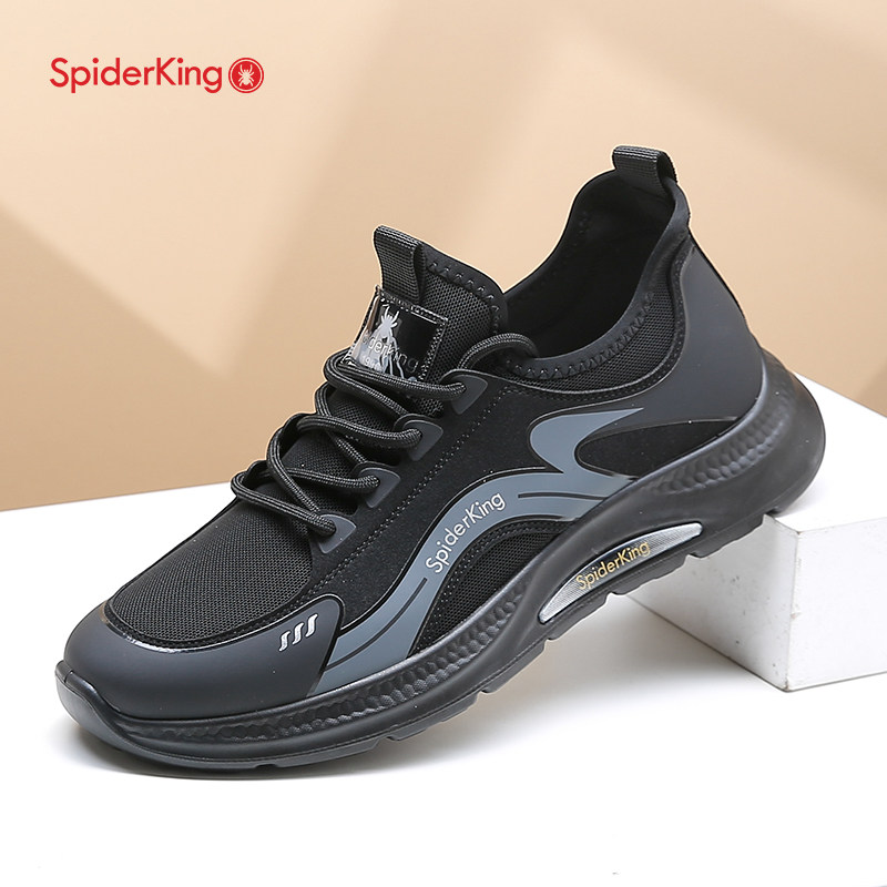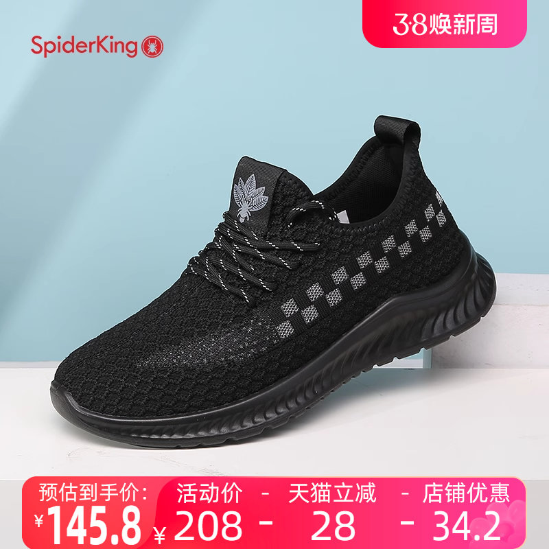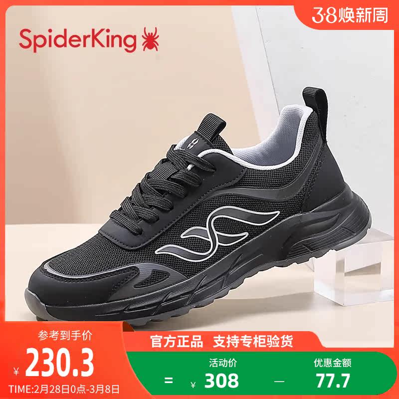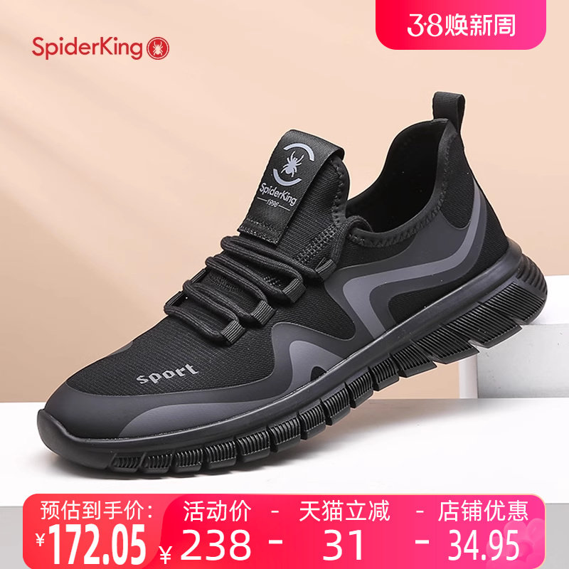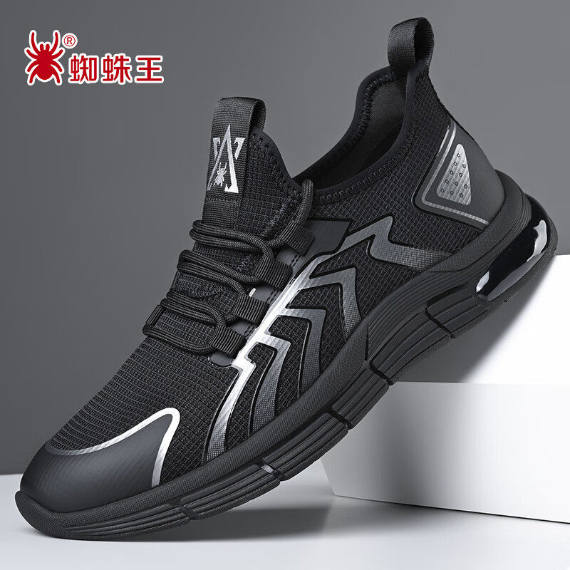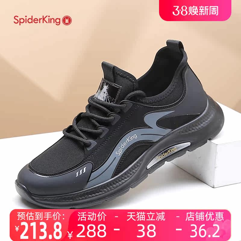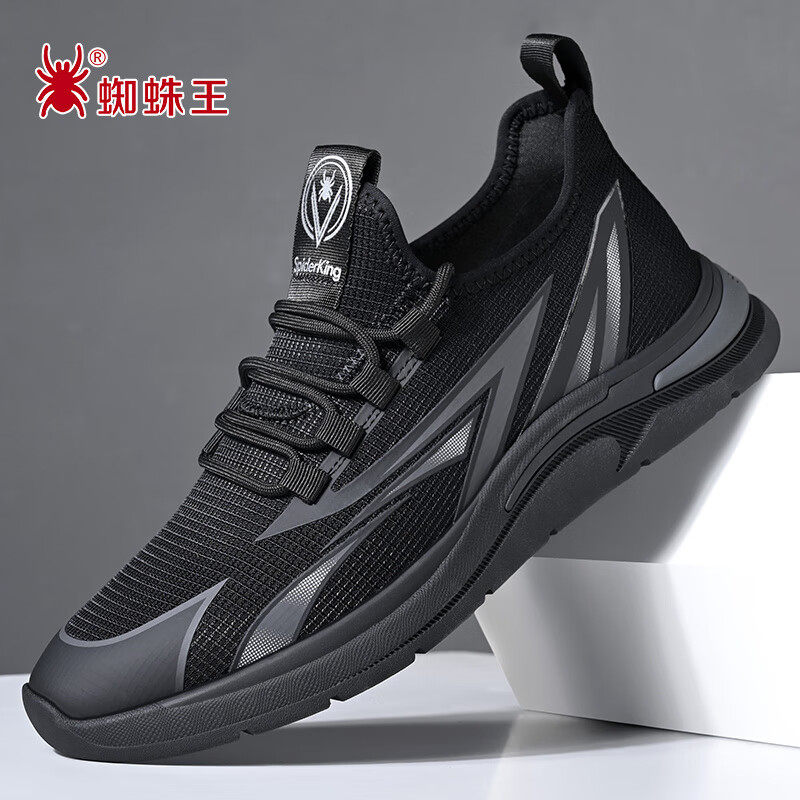 蜘蛛王男鞋2024新款春夏季黑色网面休闲透气跑步鞋男士轻便运动鞋