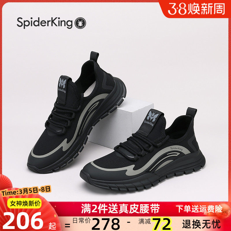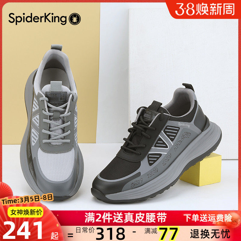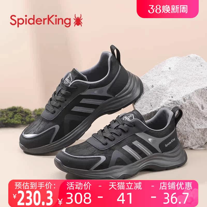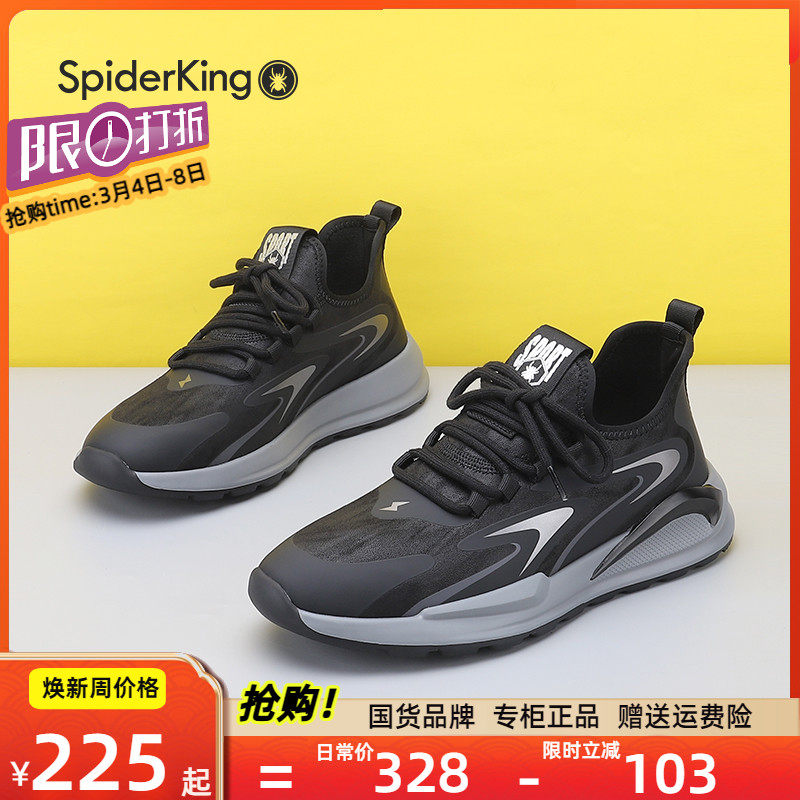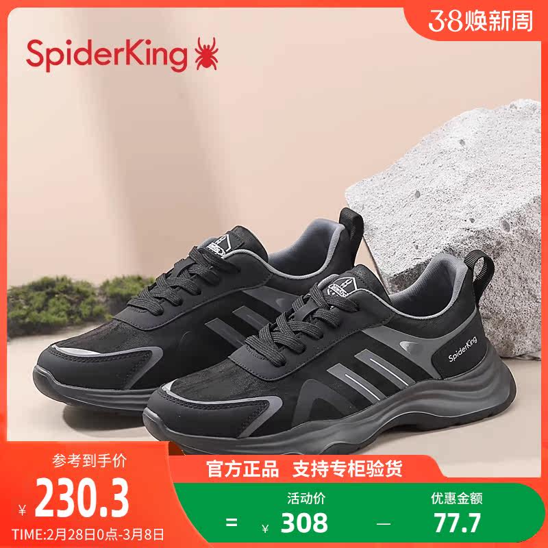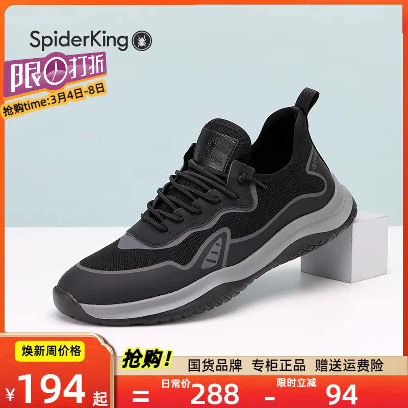 蜘蛛王男鞋春秋新款运动休闲鞋男时尚防滑厚底跑步鞋爸爸鞋单鞋子