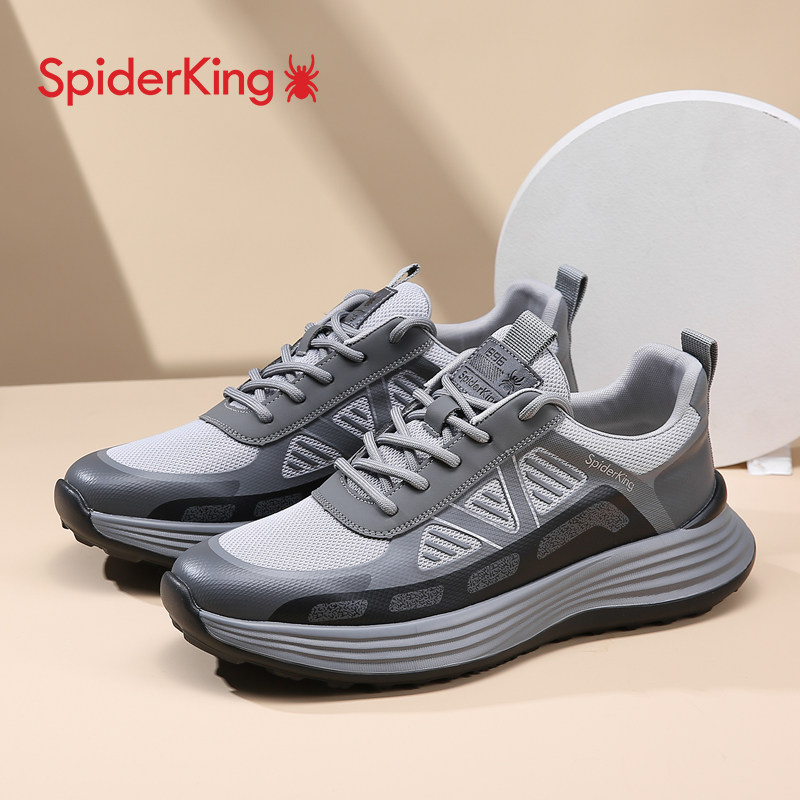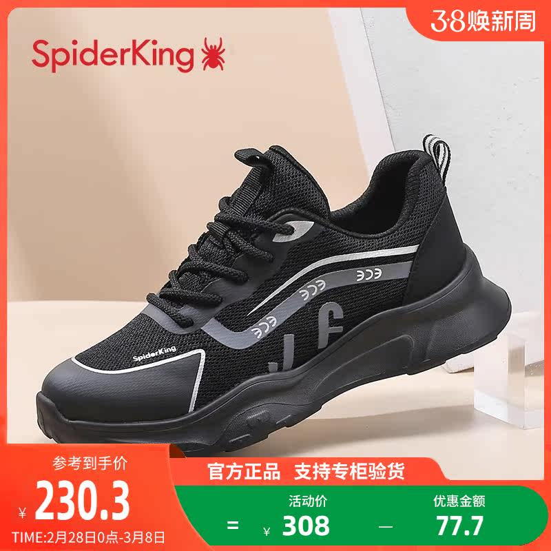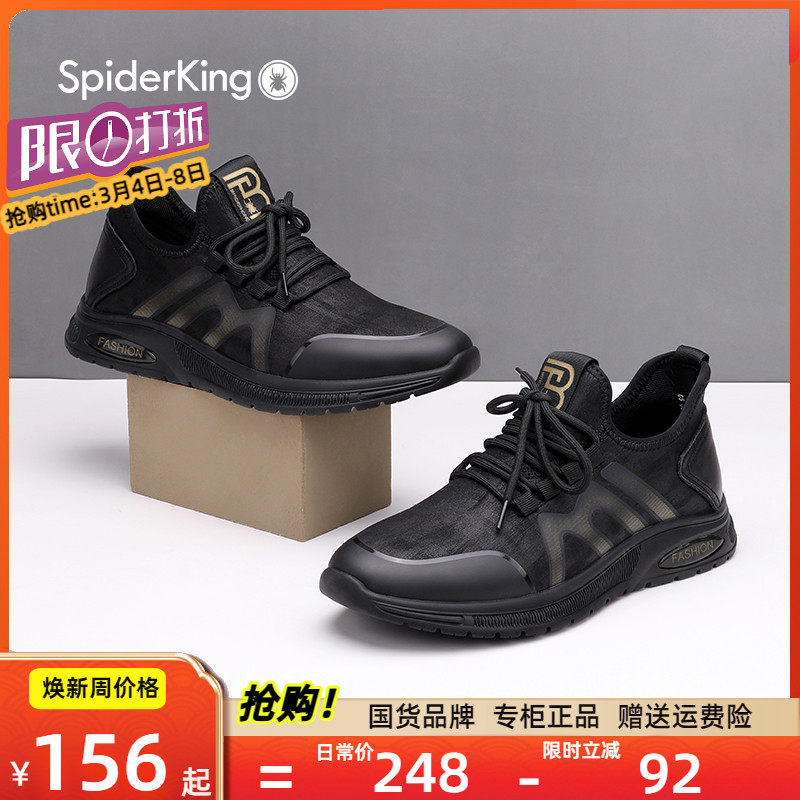 蜘蛛王男鞋休闲运动鞋男春秋季款网面透气跑步鞋牛皮鞋垫学车鞋