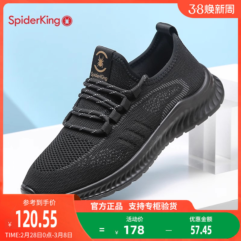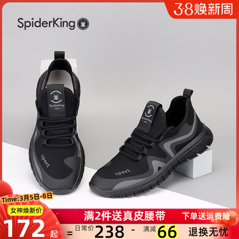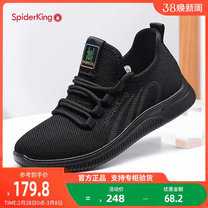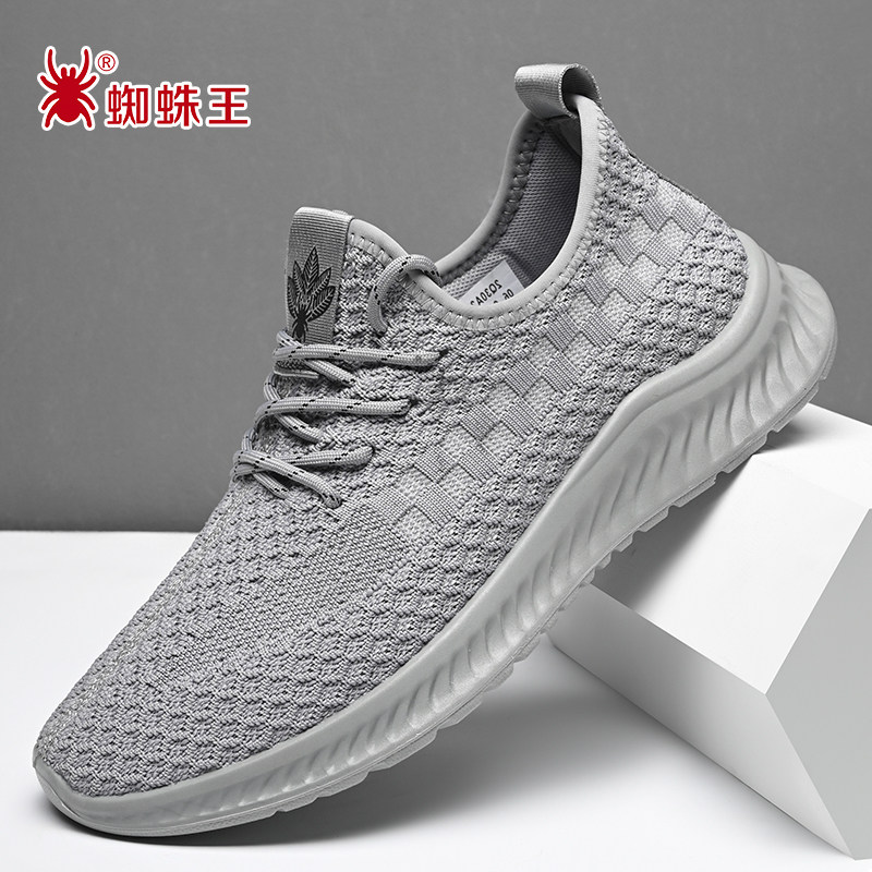 蜘蛛王男鞋正品运动夏季软底时尚休闲鞋新款飞织网面男士透气跑鞋