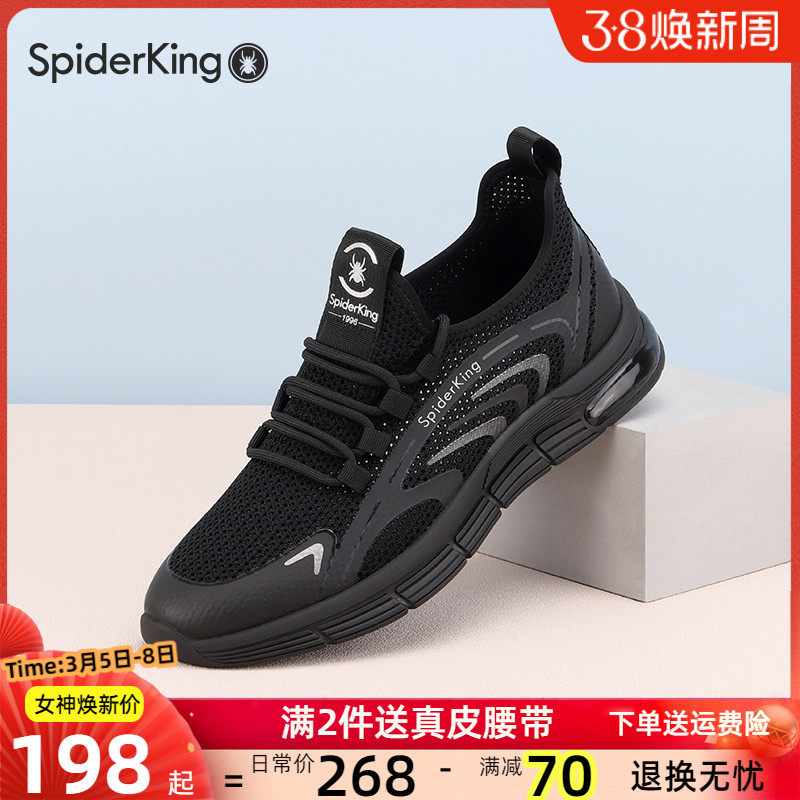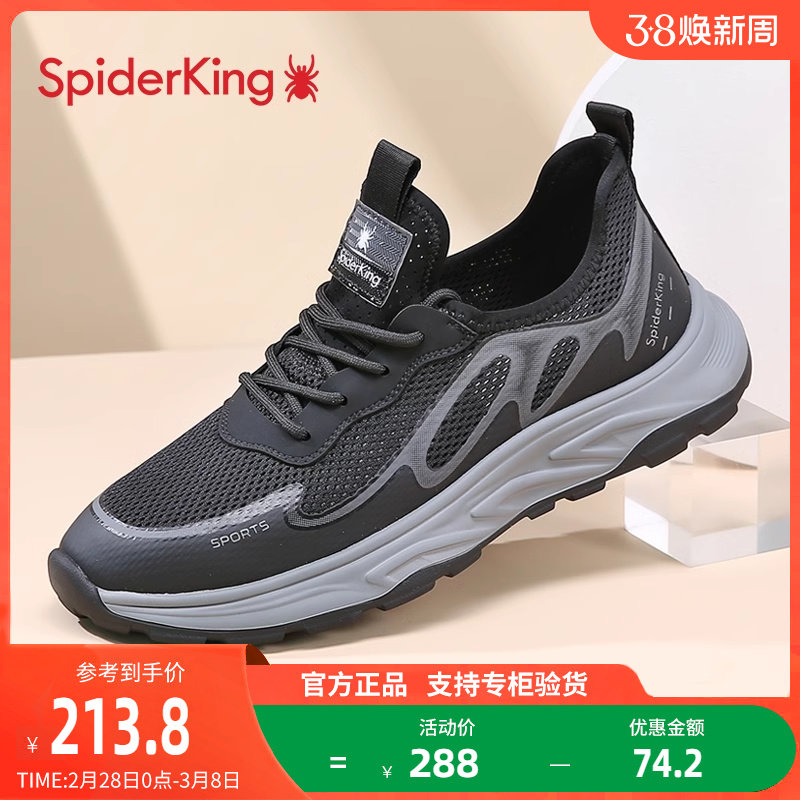 蜘蛛王男鞋新款休闲运动鞋男网面软底跑步鞋跑鞋轻便旅游鞋子