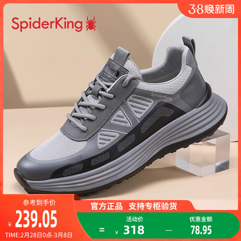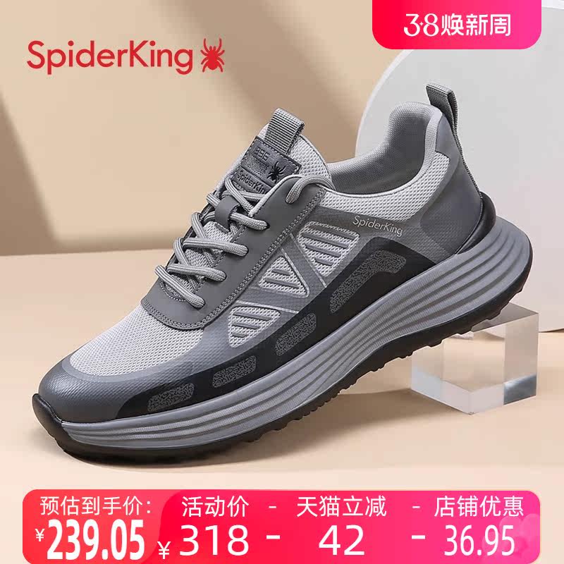 蜘蛛王男鞋跑步鞋春秋季新款轻鞋底休闲运动鞋男网面软底跑鞋子