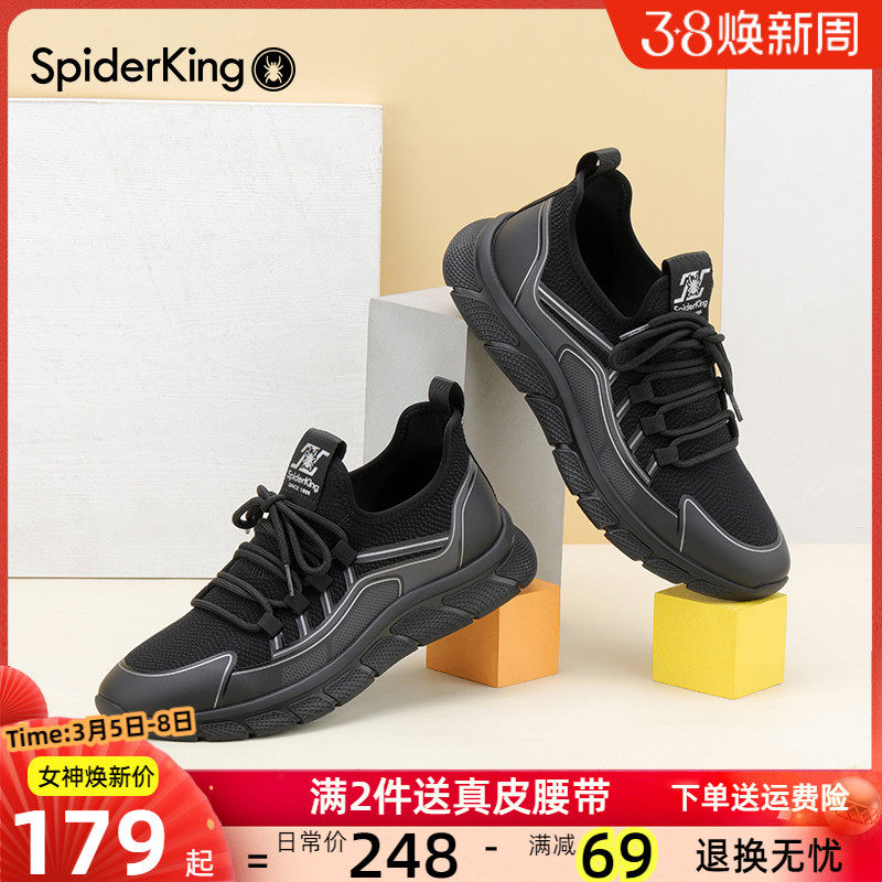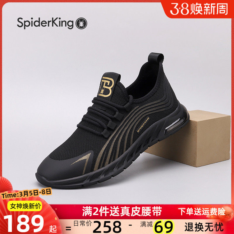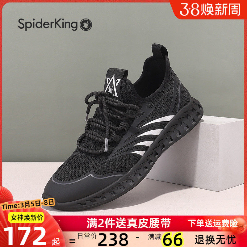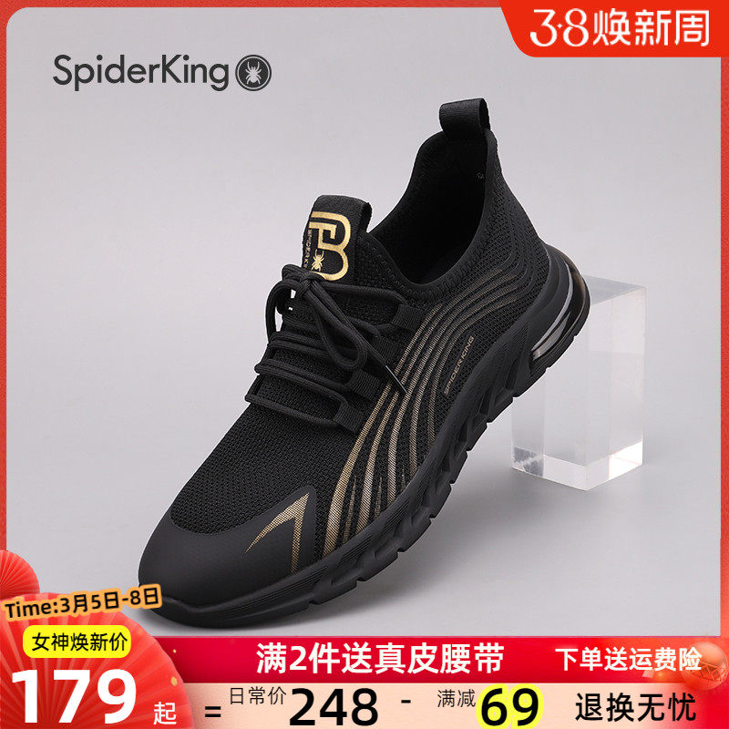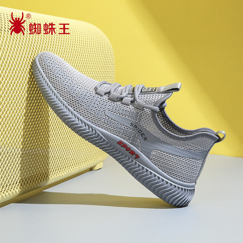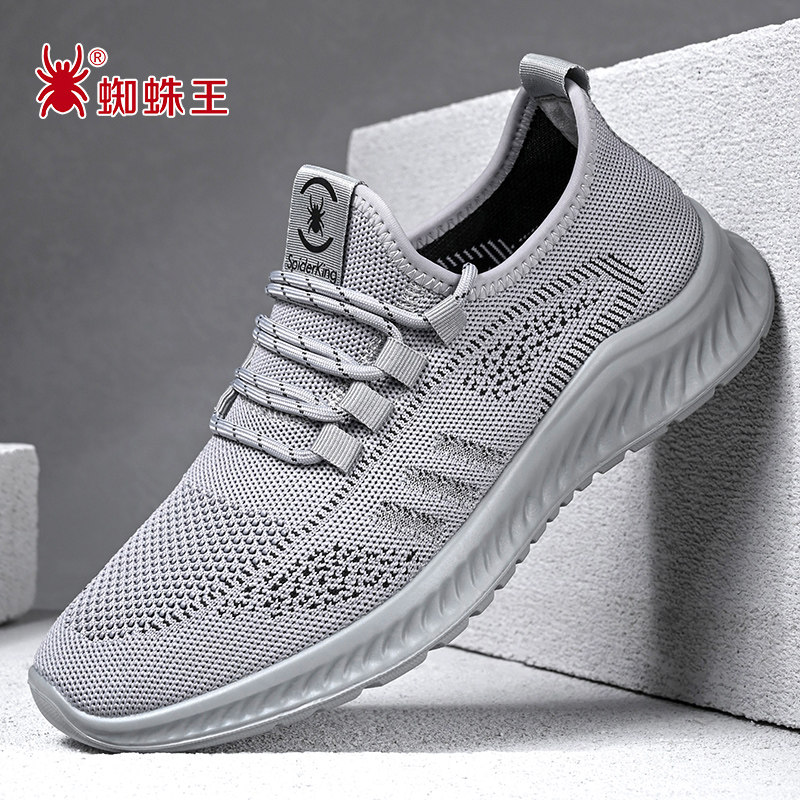 蜘蛛王男鞋春季新款韩版飞织休闲运动鞋防滑潮流百搭透气跑步鞋男