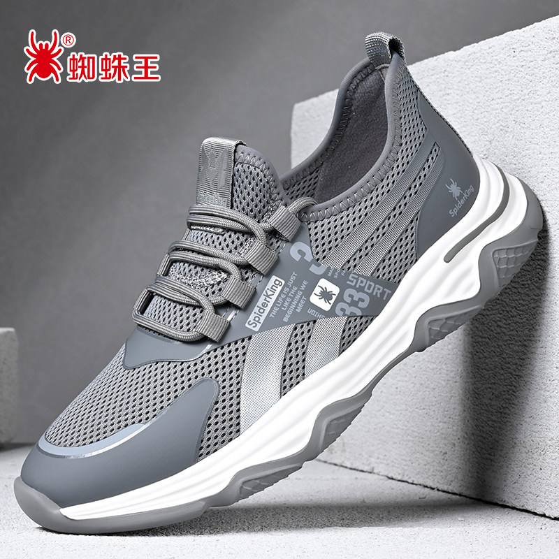 蜘蛛王男鞋夏季透气镂空网鞋新款薄款网面运动男休闲鞋网眼跑步鞋