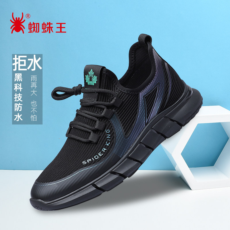 蜘蛛王男鞋防水休闲鞋户外透气春秋季下雨防雨旅游飞织运动跑步鞋