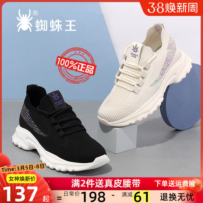 蜘蛛王网面女鞋跑步鞋春夏新款厚底运动鞋透气休闲轻便妈妈鞋子