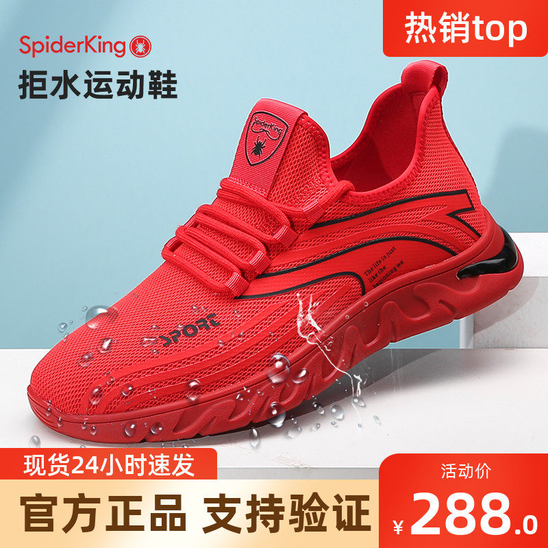 蜘蛛王正品官方旗舰店红轻便跑步鞋红青透气蜒运动鞋蜻蜒单男蜻男