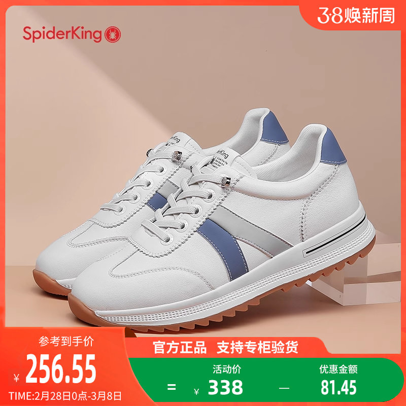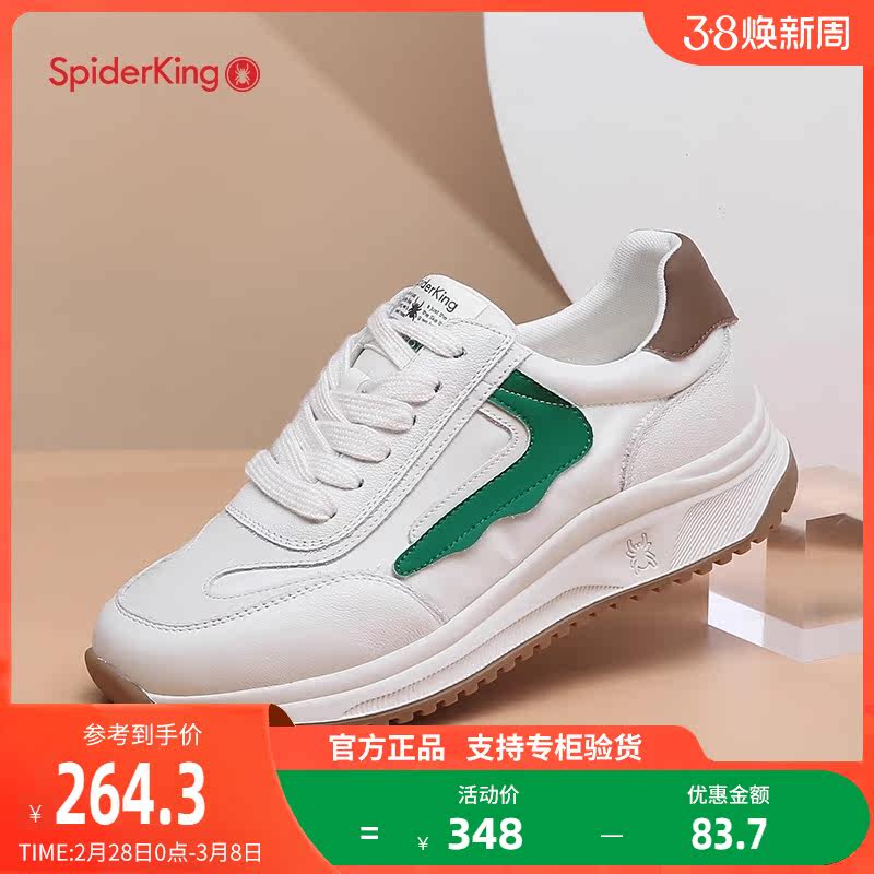 蜘蛛王复古休闲鞋小白鞋女2023春季女鞋真皮商场新款运动鞋跑鞋女