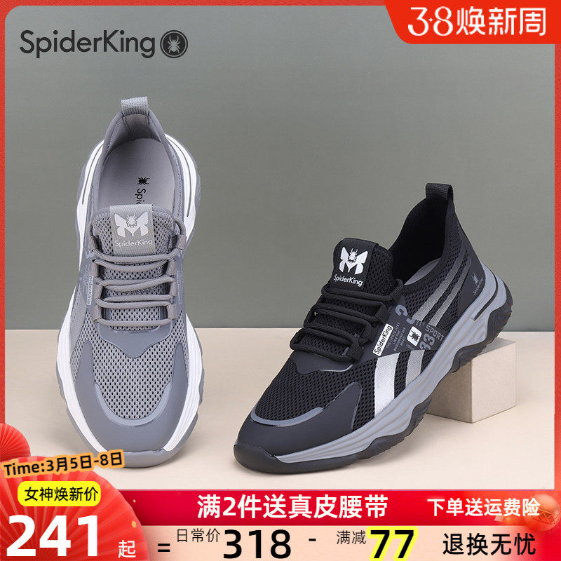 蜘蛛王老爹鞋男鞋2024春夏新款休闲厚底运动鞋男网面透气跑步鞋