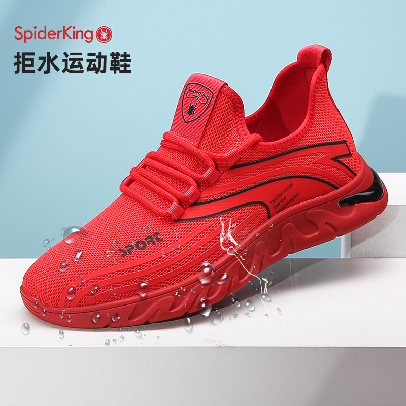 蜘蛛王正品官方旗舰店红网面跑步鞋红青飞织蜒运动鞋蜻蜒单男蜻男
