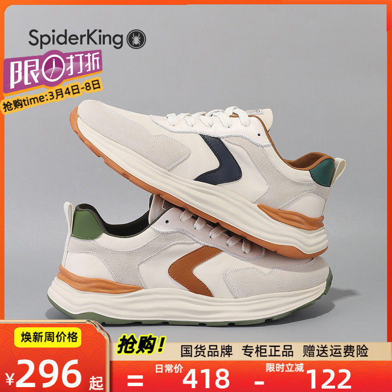 蜘蛛王男鞋秋季新款男士时尚休闲鞋男士软底轻便复古慢跑鞋