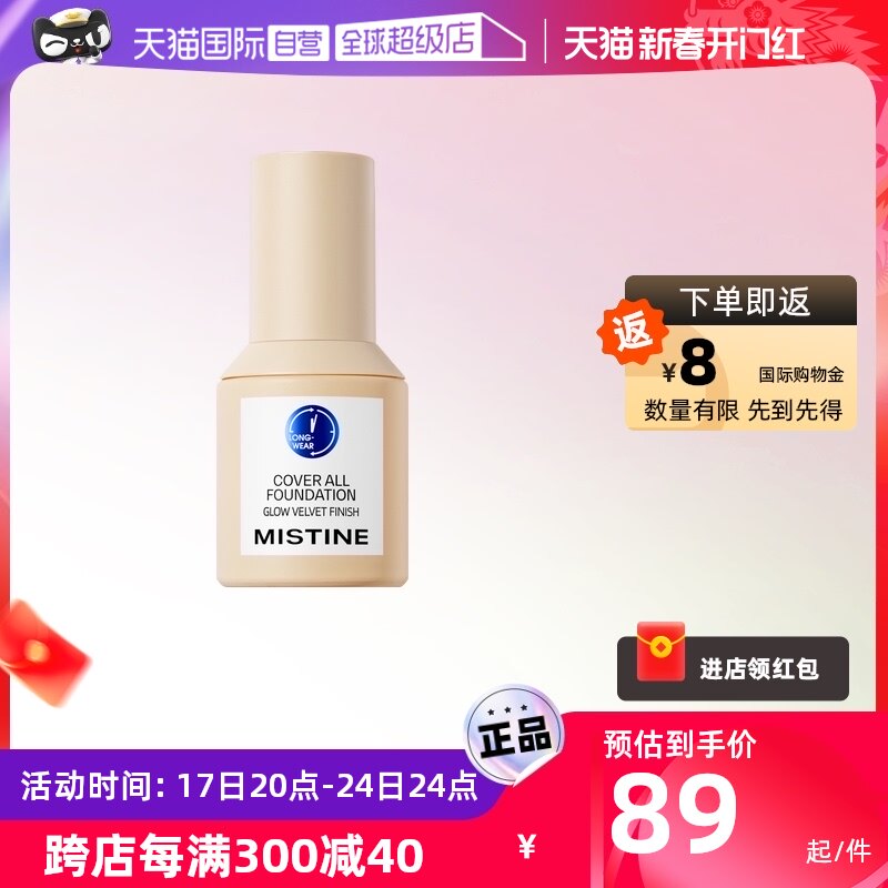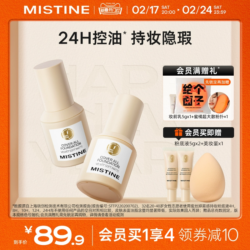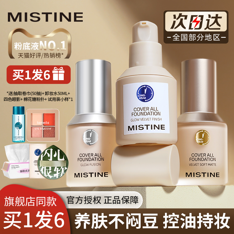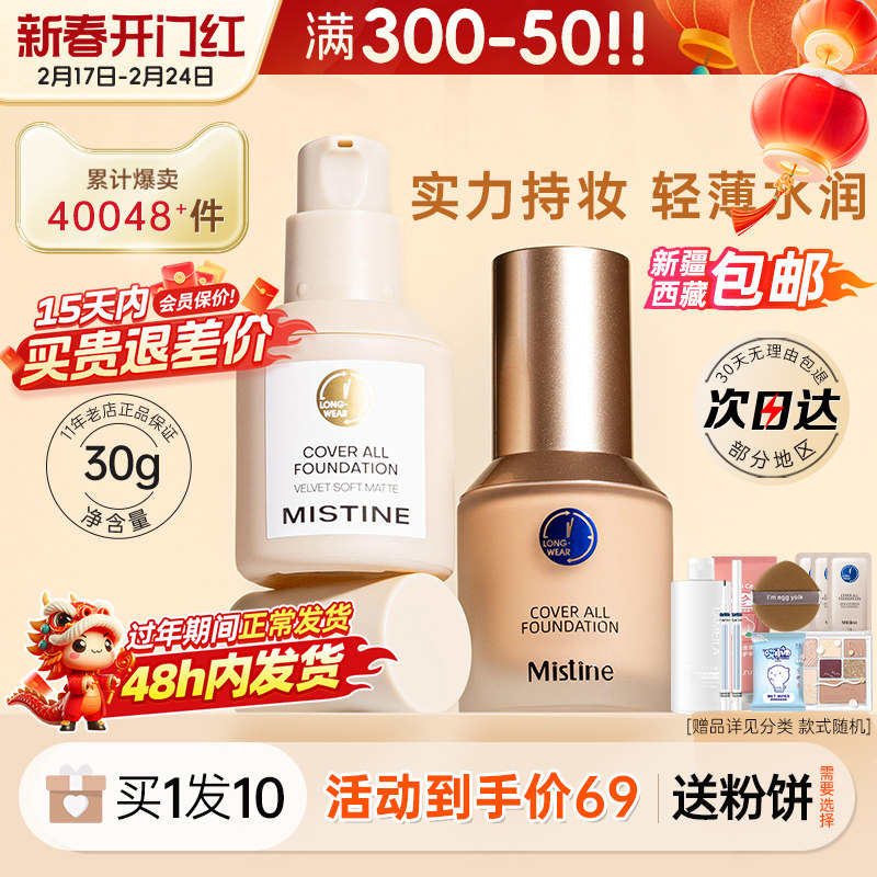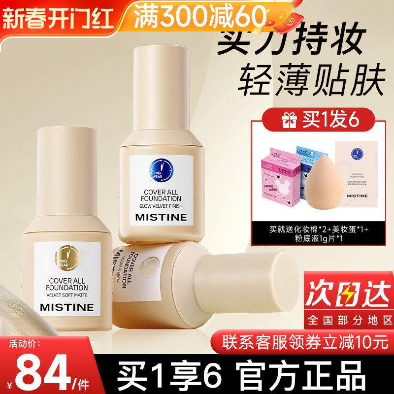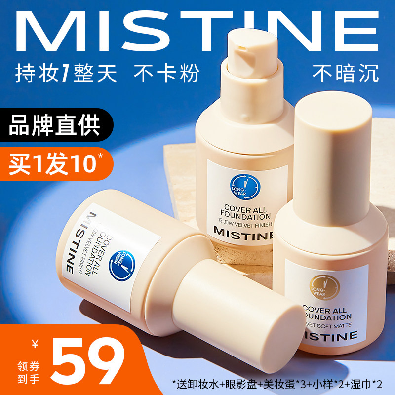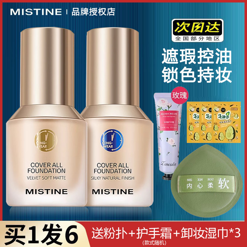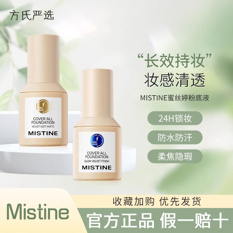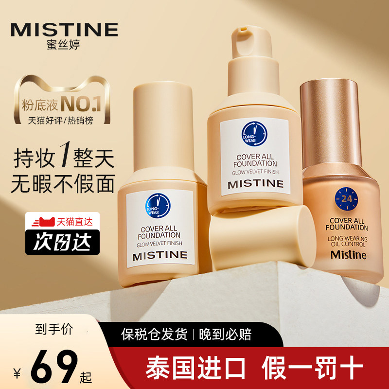 蜜丝婷24小时粉底液干混油皮遮瑕Mistine蓝盾养肤控油持妆不脱妆