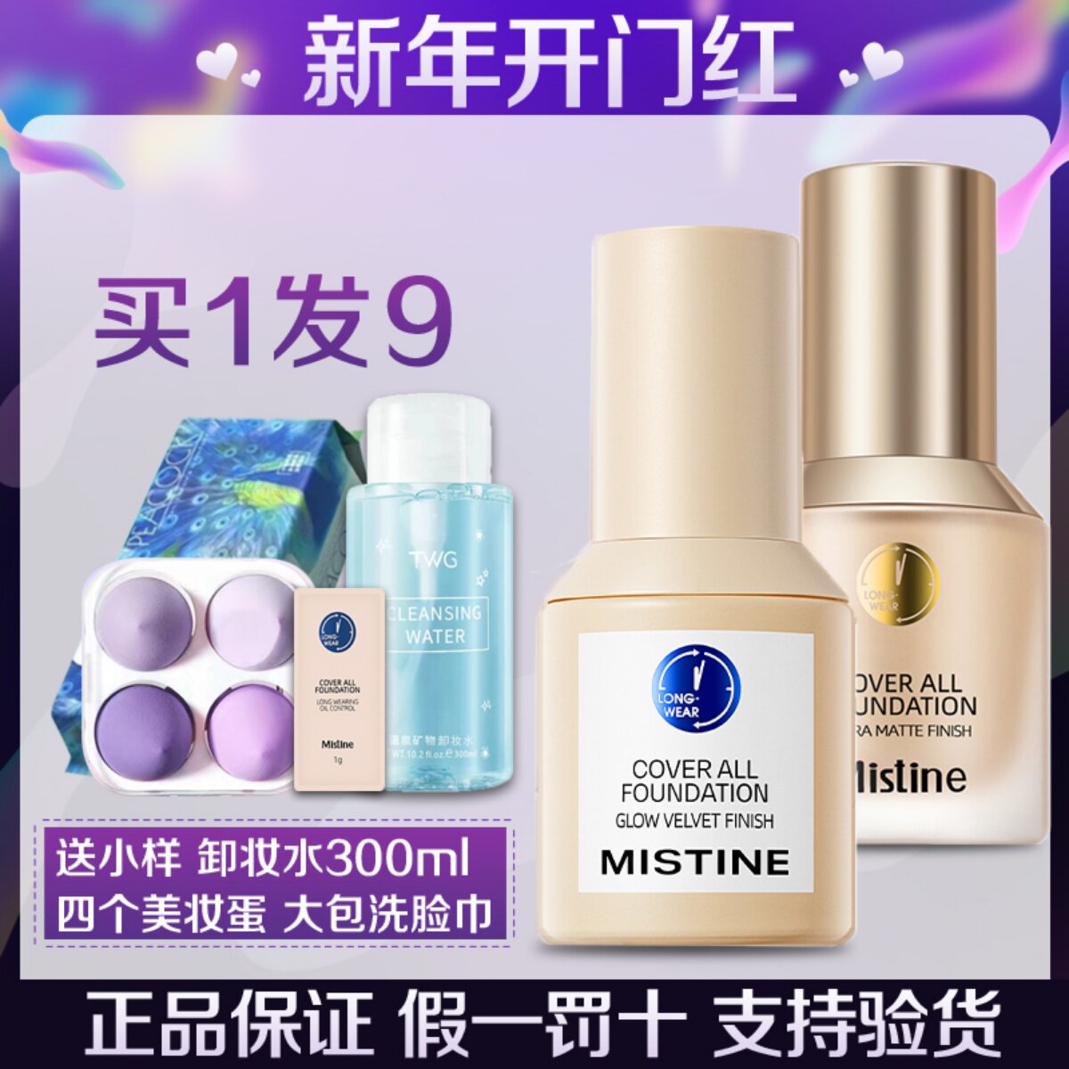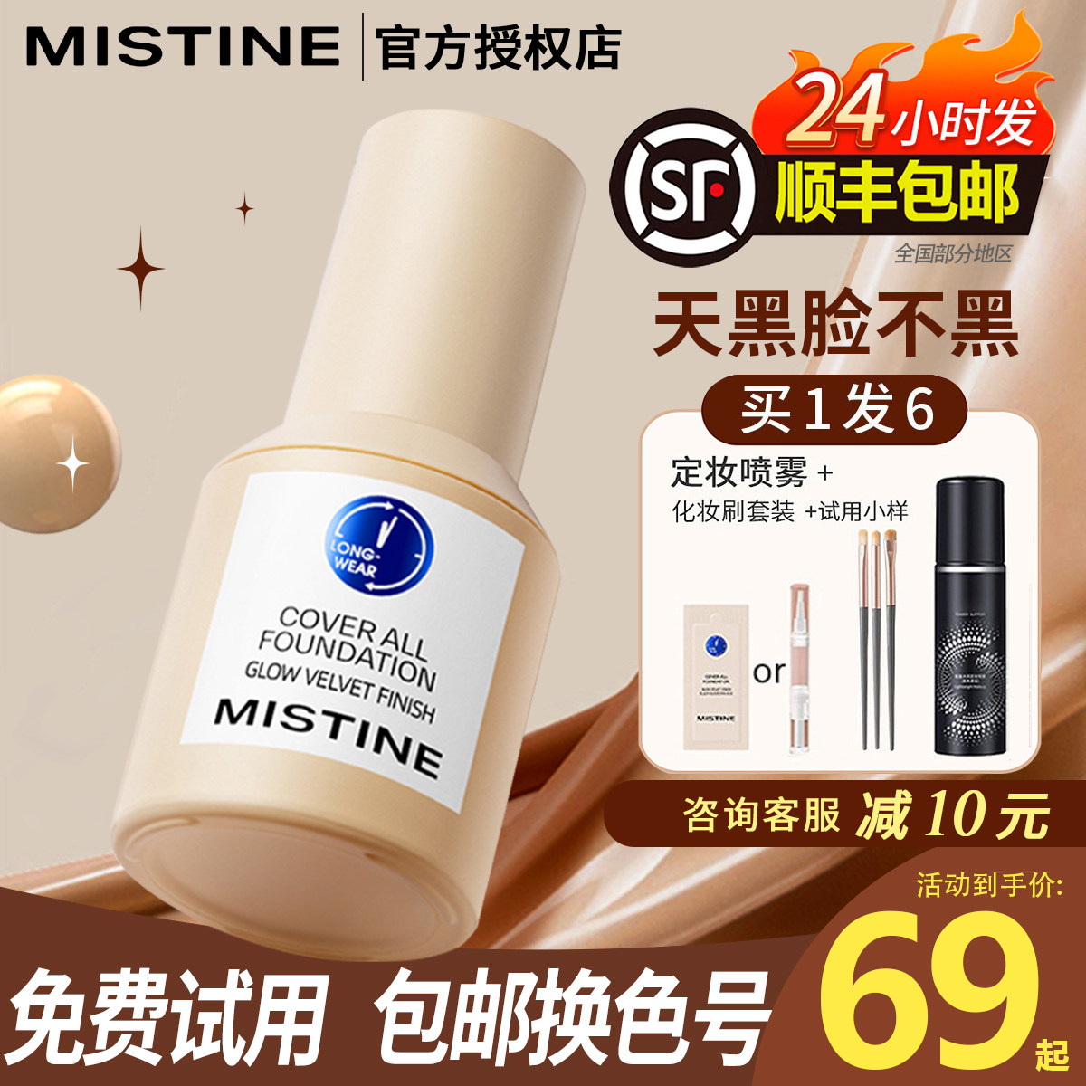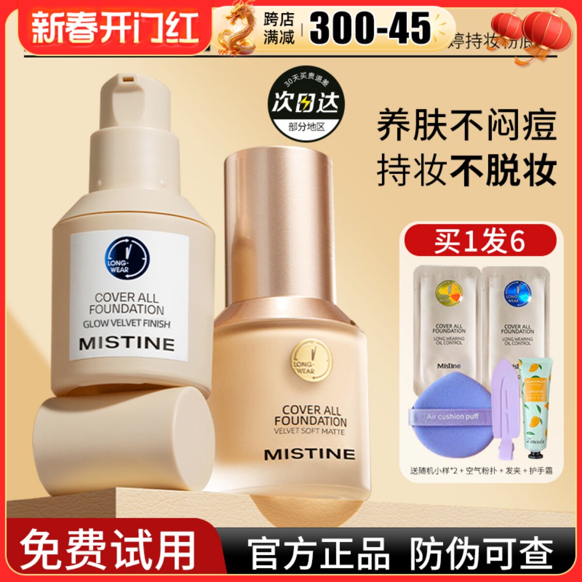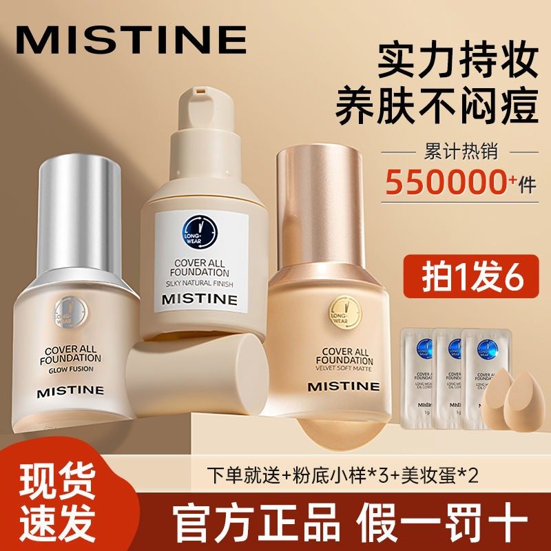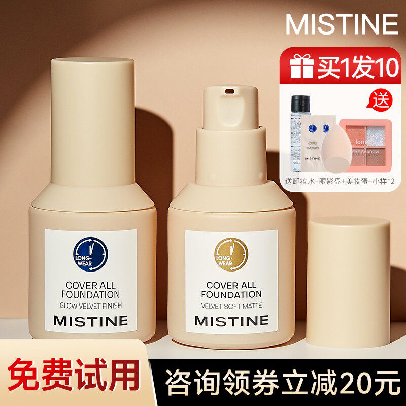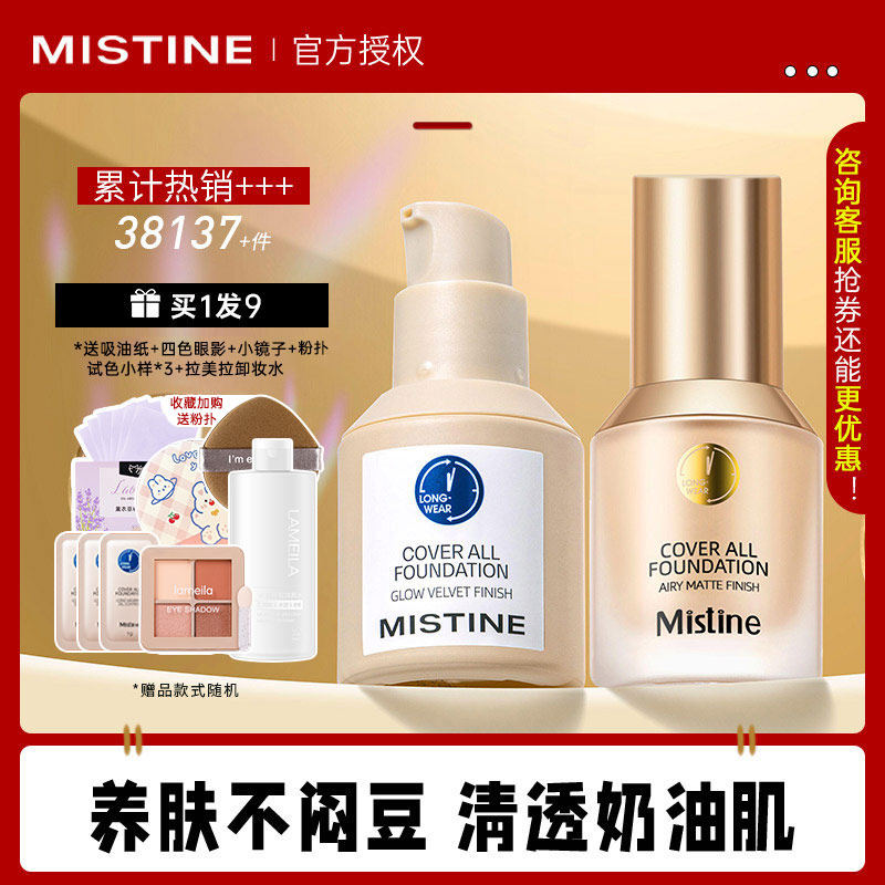 【新品首推】Mistine蜜丝婷4K粉底液遮瑕轻薄保湿混干瑕疵油皮