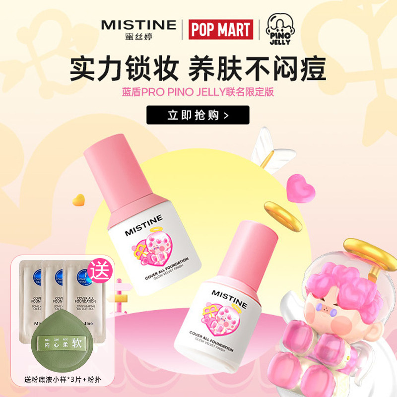 Mistine蜜丝婷泡泡玛特联名蓝盾粉底液遮瑕液全肤质不易脱妆正品