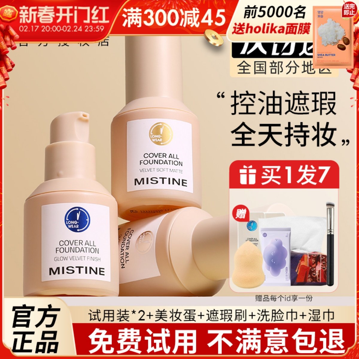 泰国mistine粉底液蜜丝婷小蓝盾金盾旅行中小样试用装遮瑕液隔离