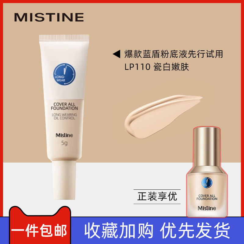 Mistine蜜丝婷小蓝盾粉底液小样试色遮瑕持久保湿控油不脱妆正品
