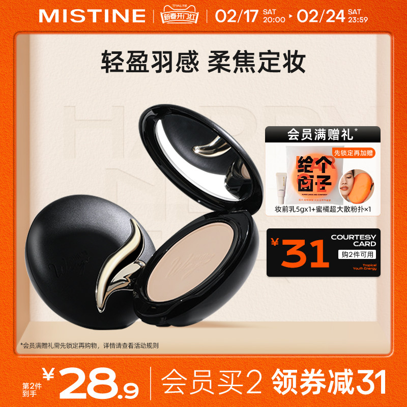 Mistine蜜丝婷羽翼粉饼防晒粉饼定妆散粉遮瑕蜜粉轻薄雾面