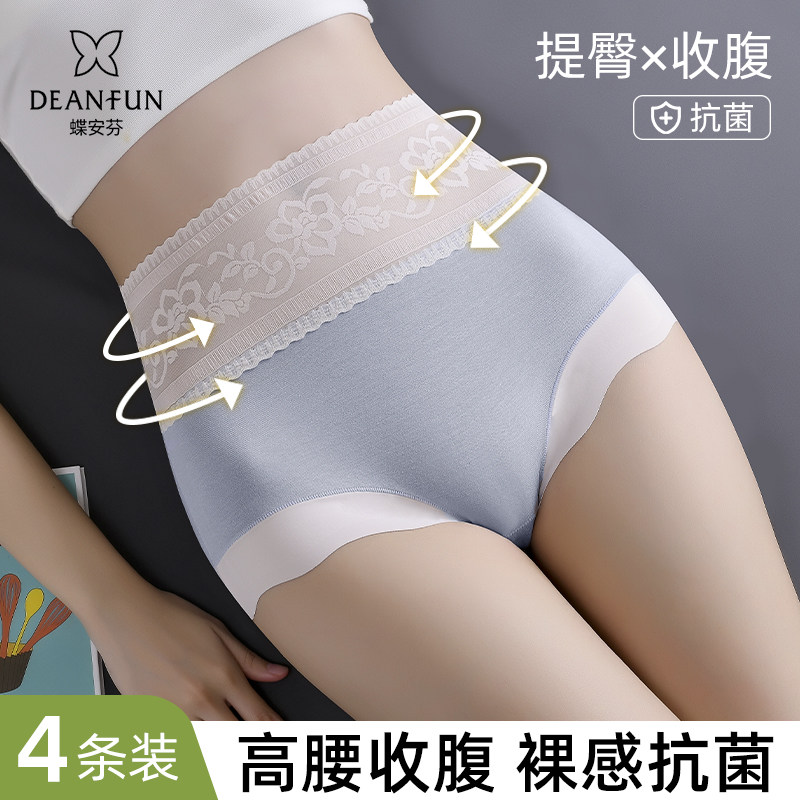 蝶安芬女士内裤纯棉裆高腰收腹提臀平角时尚性感大码短裤deanfun