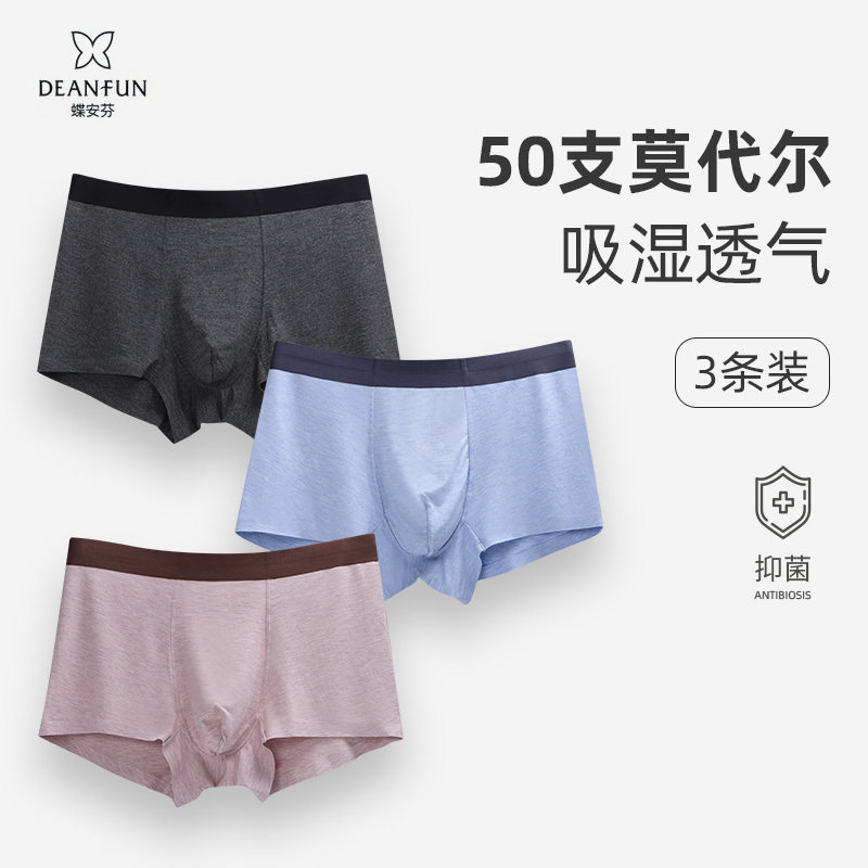 蝶安芬男士内裤50S莫代尔男款四角裤头男生秋冬平角短裤7A抗菌