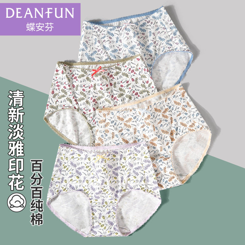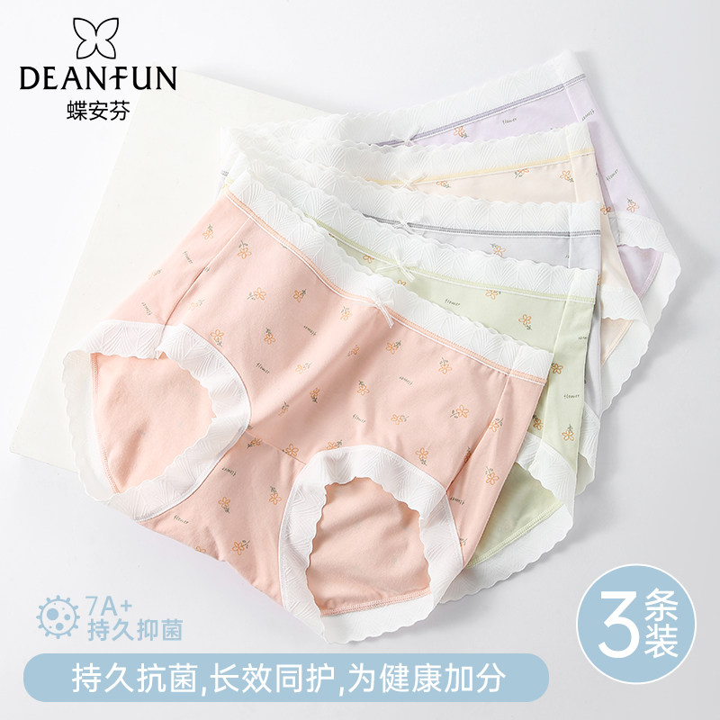 蝶安芬女内裤正品纯棉100%全棉简约透气高腰三角宽松短裤deanfun