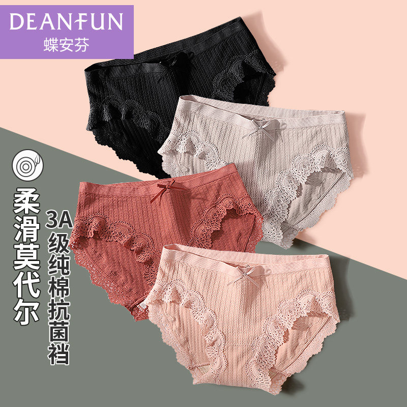 蝶安芬女士内裤女莫代尔舒适优雅蕾丝性感中腰女生底裤青年短裤头