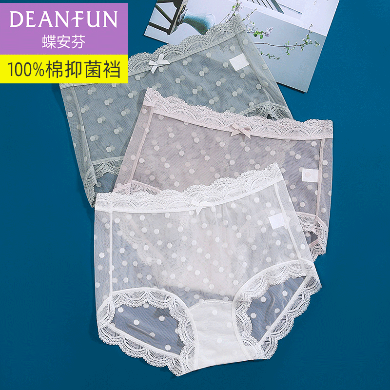 蝶安芬性感女内裤中高腰透明小平角裤蕾丝纯欲短裤头100%棉抗菌裆