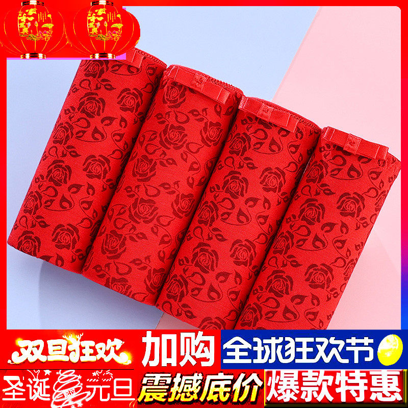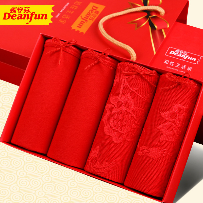 蝶安芬两条大红色内裤女士无痕纯棉高腰本命年结婚透气三角短裤头