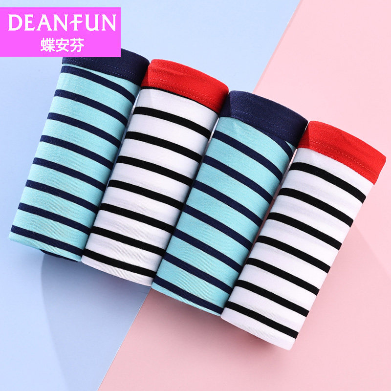蝶安芬女士内裤莫代尔面料经典海军风条纹中腰三角裤时尚女生短裤