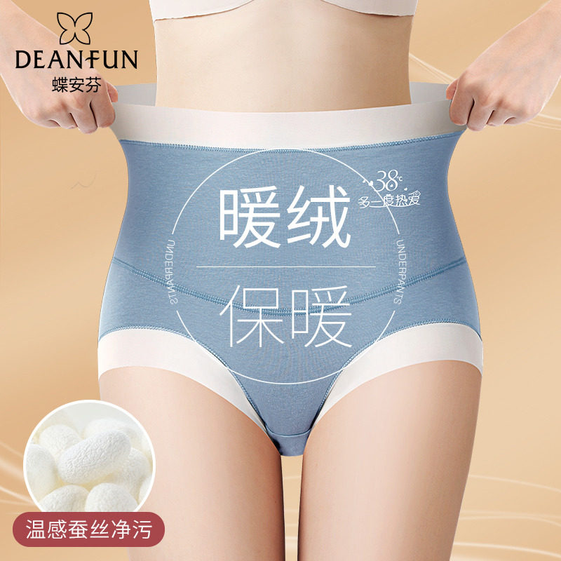 蝶安芬女士内裤女红色保暖加绒高腰收腹桑蚕丝裆本命年短裤三角裤