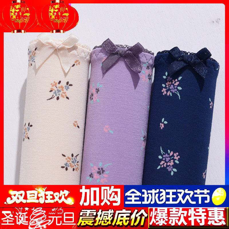 蝶安芬秋冬女士内裤纯棉全棉裆抗菌中腰莫代尔平角裤少女生式短裤