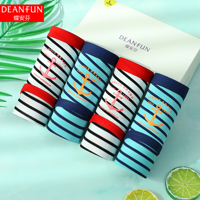 蝶安芬内裤女透气速干莫代尔短裤海军条纹性感无痕中腰提臀平角裤
