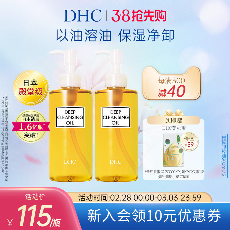 【会员内购会】DHC橄榄卸妆油200ml*2瓶深层清洁去黑头