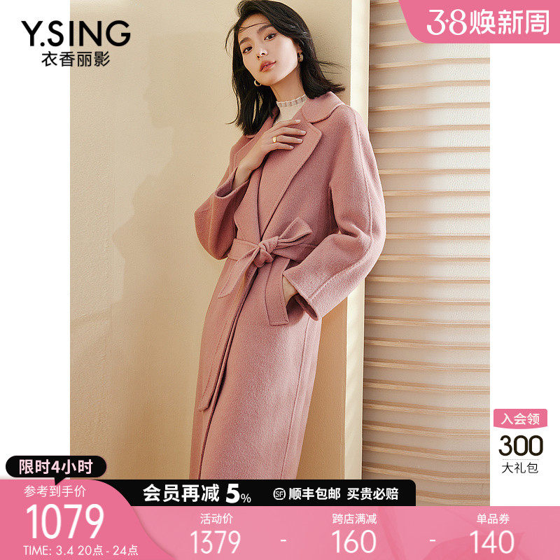 粉色羊毛双面呢大衣衣香丽影2023年冬季新款系带收腰显瘦毛呢外套