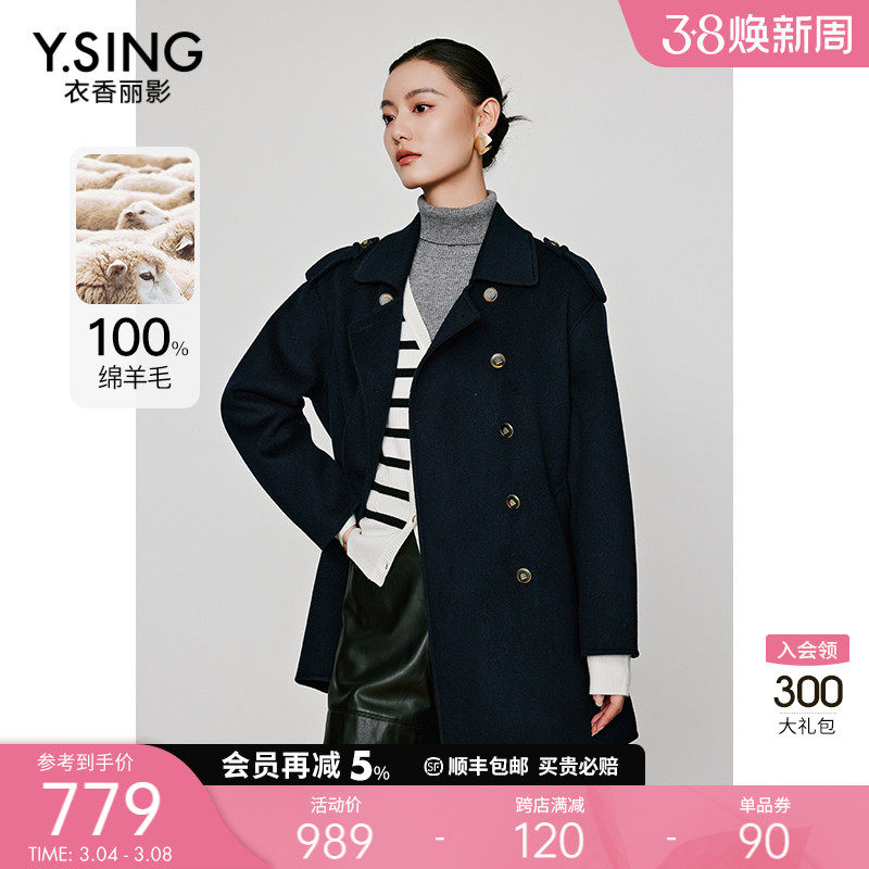 【100%绵羊毛】双面呢外套衣香丽影2023冬季新款气质毛呢西装大衣