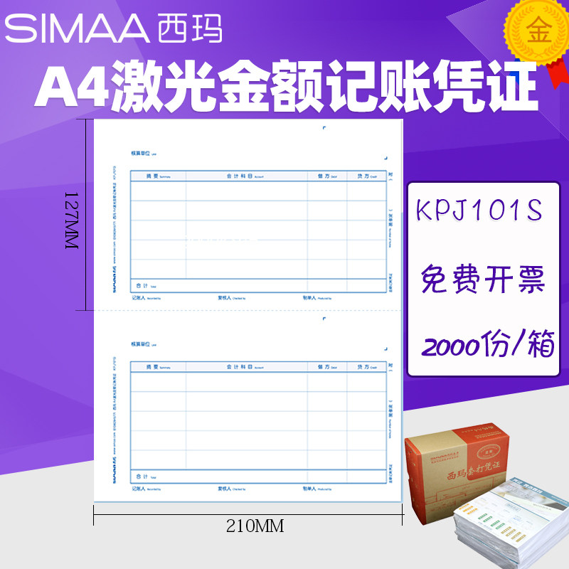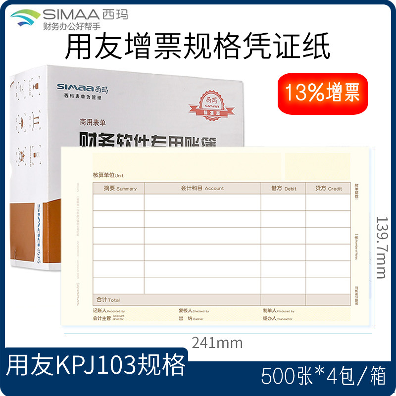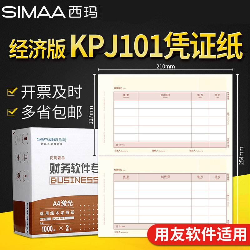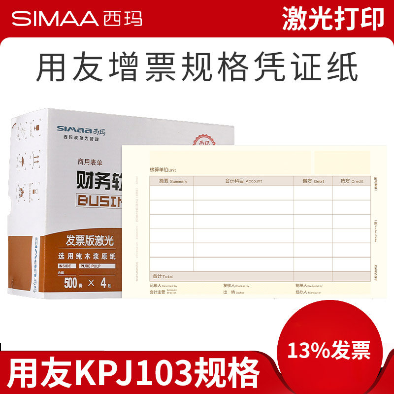 用友KPJ101西玛A4激光210*127金额记账凭证打印纸SKPJ101-3T3T6U8