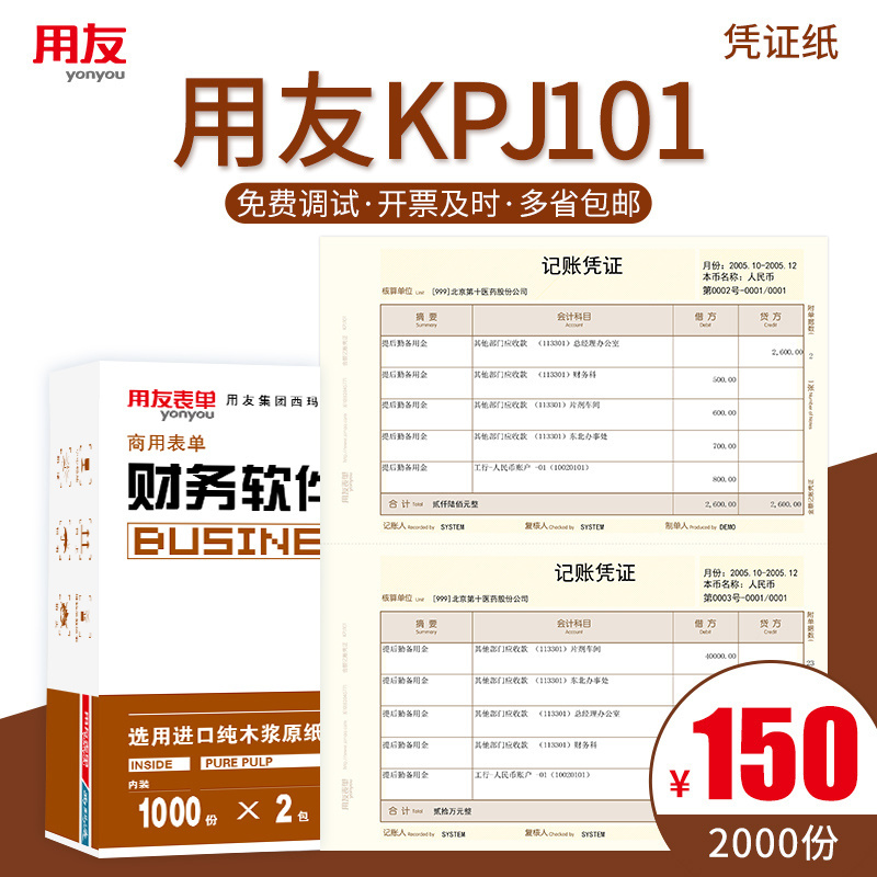 用友西玛U8凭证纸 针打针式记账凭证打印纸 会计记账凭证打印纸KPL101用友软件专用 T3 T6 U8 NC好会计适用