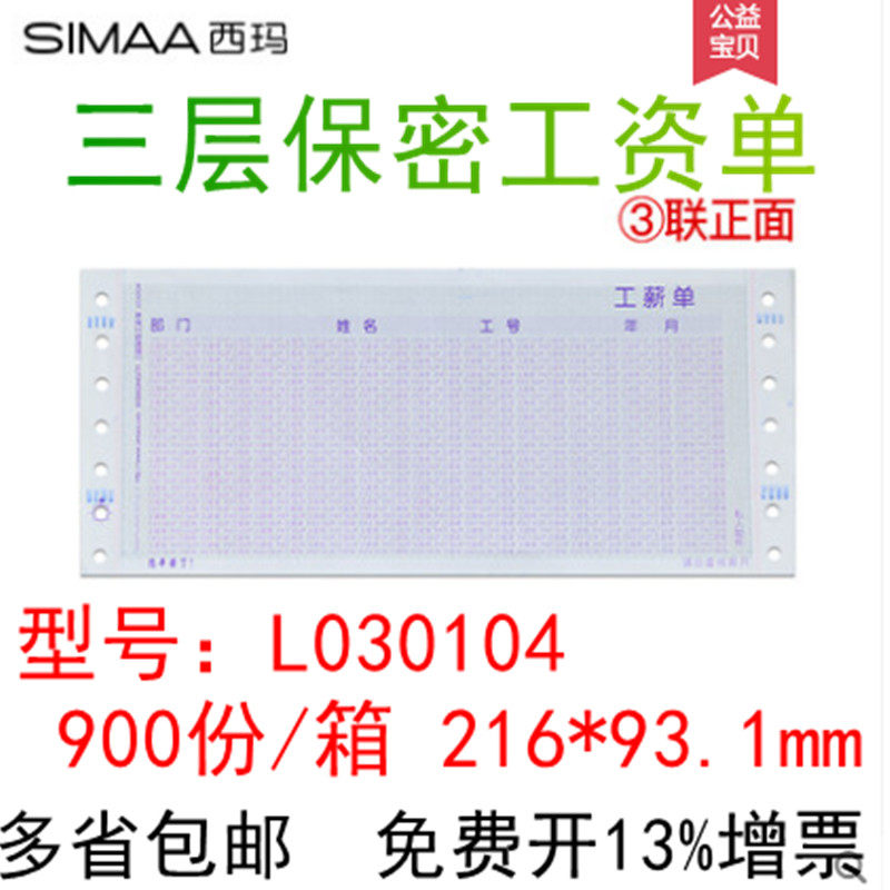 900份用友西玛工资条针打针式工资单针打保密薪资单三联工资单打印纸电脑打印纸薪资密封L030104