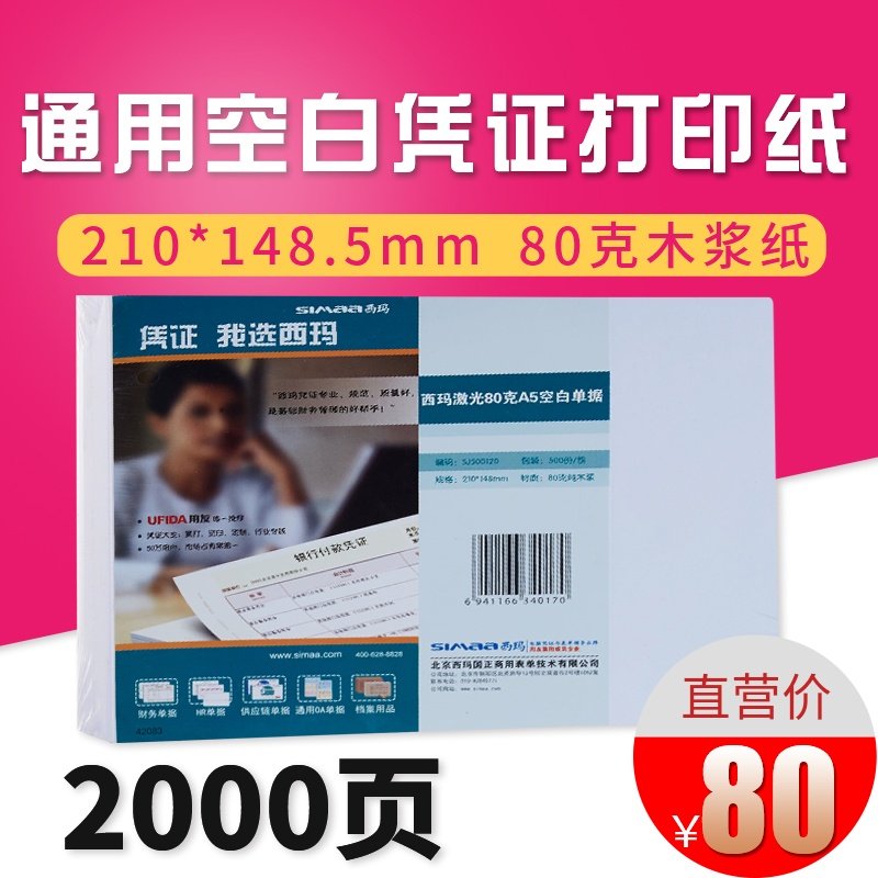 西玛08g办公用品A5空白凭证纸用友凭证打印纸210*148.5 SJ200150