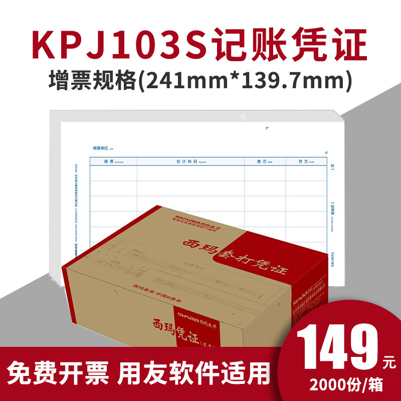 用友凭证打印纸KPJ103规格增票大小凭证纸西玛发票版金额记账凭证纸用友软件通用 好会计t3t+t6u8NC KPJ103S