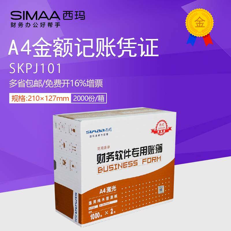 西玛A4金额记账凭证SKPJ101-3激光金额记账凭证打印凭证纸210*127